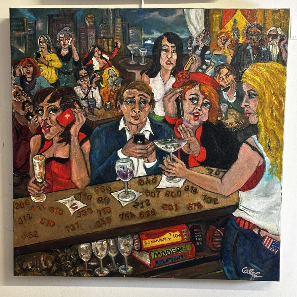 Art: Illustration by Joseph Hirsch titled, “Moto”, photo collage by Jacob E. Goodman, portrait of woman by Max Ring, four framed prints by Arthur Kolnik (1890-1972), mixed-media collage by Fanny Renoir, noted San Francisco poet, oil painting by James Redo, “Untitled”, acrylic and enamel painting by James Redo titled, "Faster Than The Speed of Light", oil painting by Nancy Calef titled, “Dopamine”, oil painting by Momo (Richard Anderson) known North Beach outsider artist titled, “Caitlyn”, paintings by Lawrence Ferlinghetti, beat poet, owner of City Lights Books in San Francisco, visionary painting by Albert Nemethy, tribute painting to Jack Hirschman, mixed media by Howard Whitehouse titled, “The Read Poet”, beveled mirror by Maitland Smith, print by Peter Buch, print by David Goines, painted film collage by Jeanne O’Connor titled, “Monaco I”, photographs by Pat Koenigsberg, paintings by V. Romano, improved map of London from 1833 from actual survey, engraved by W. Schmollinger, print of map of Western London by George Cram, late 19th Century and more!