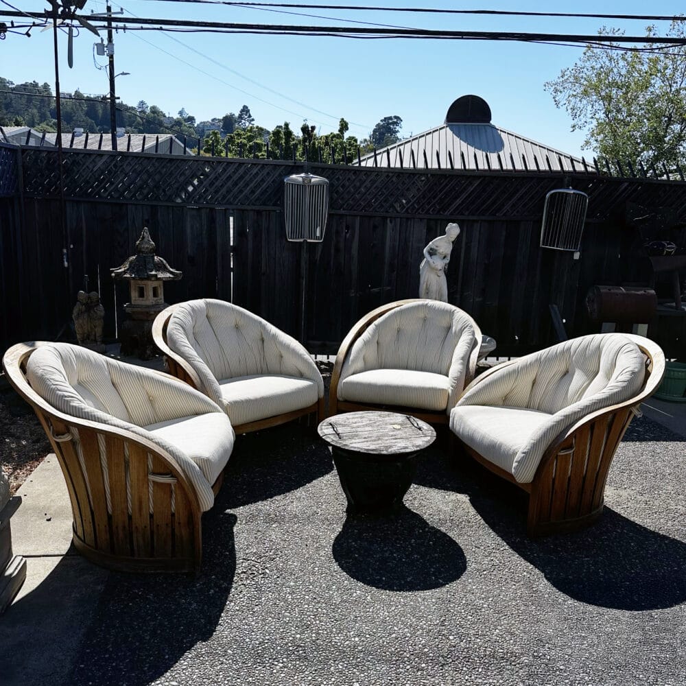Patio: Soak up the sun in style lounging on your Brown Jordan Venetian chaises and dine at the Brown Jordan Venetian dining table and chair set. We also have a Janus et Cie teak outdoor table. Tons of other seating includes Smith and Hawken and Summit benches, vintage Kipp Stewart for Summit club chairs. We have new concrete cuties including a pair of bunnies and an elephant. New pots and planters were added as well so be sure to venture out back!