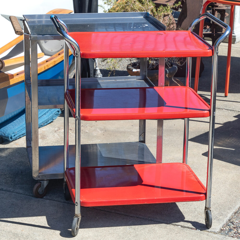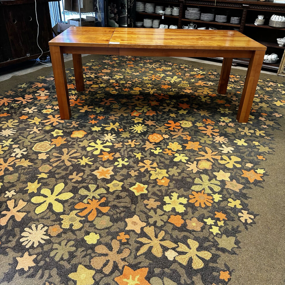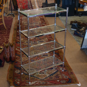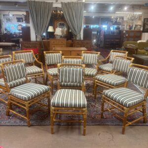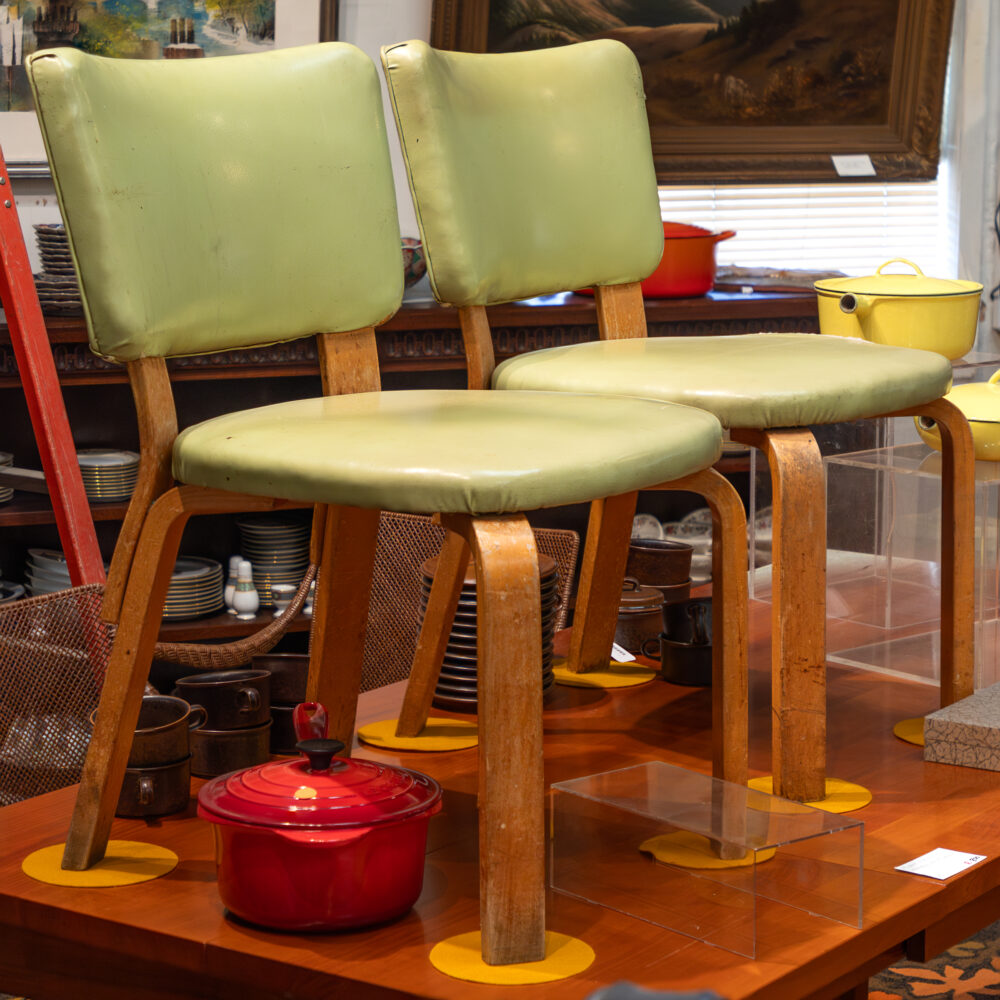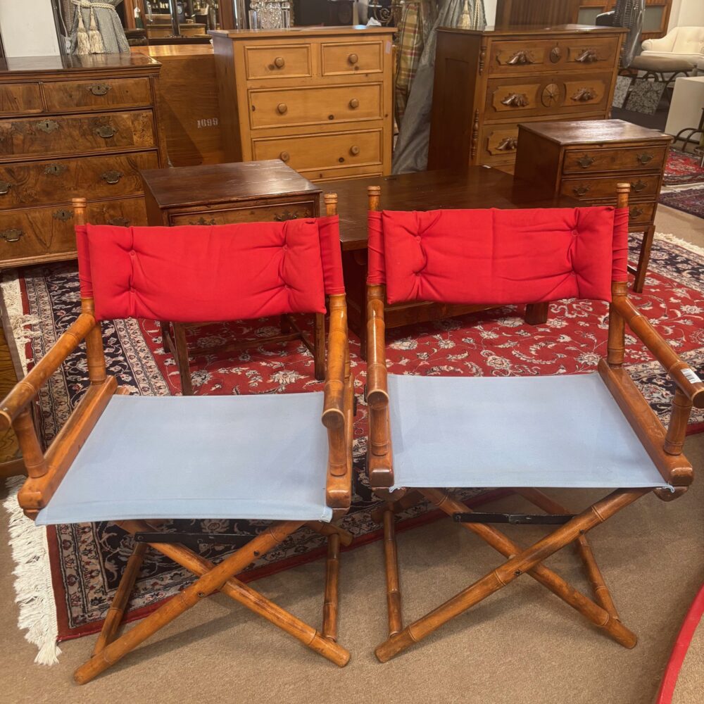 Furniture: We have chairs for all seasons and chairs for all reasons. We have a set of 10 McGuire rattan and leather wrapped dining chairs in excellent condition, a pair of Danish armchairs by Borge Mogenson for Soborg Mobler, a set of four blonde rush dining chairs, a pair of bamboo directors chairs and many other vintage seating options. In other furniture news, we have many pine pieces including a pine cupboard and pine hutch as well as pine dressers. Other notable pieces include an antique adjustable easel, chrome and glass display shelf, wood dining table with three extendable leaves, burl walnut chest of drawers, Gladdin