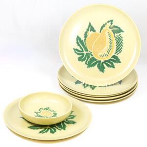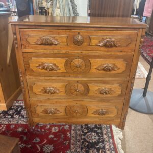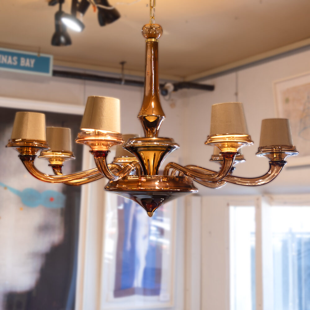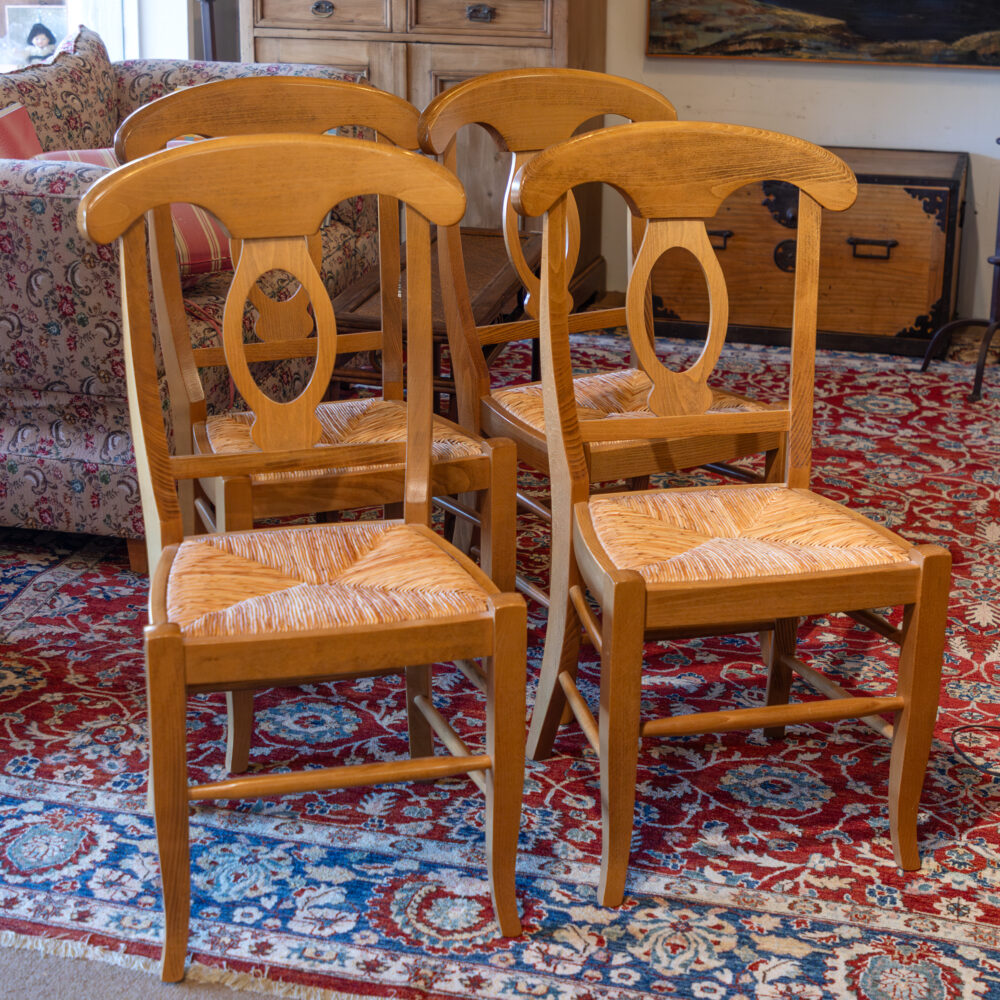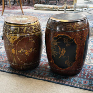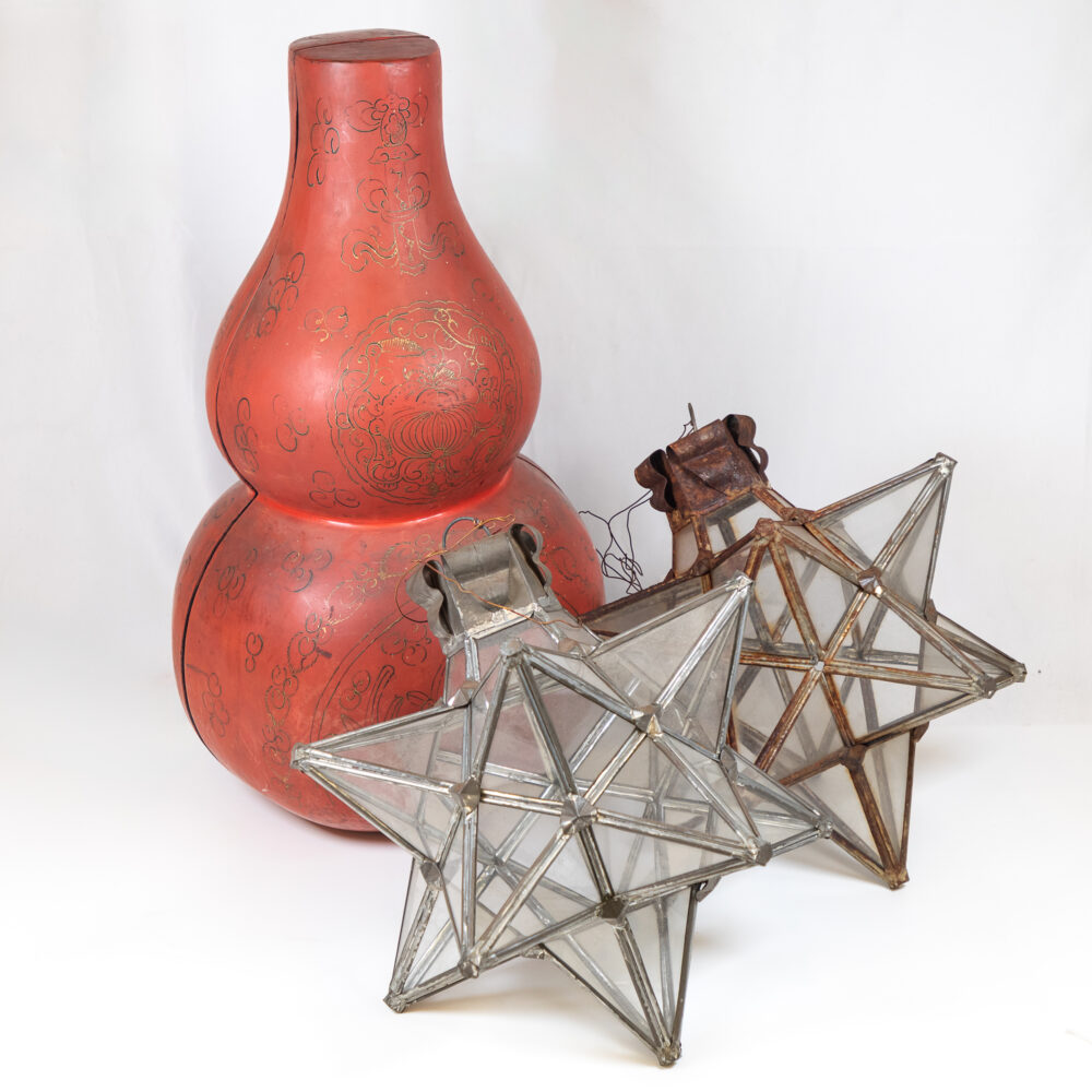 Furniture: We have chairs for all seasons and chairs for all reasons. We have a set of 10 McGuire rattan and leather wrapped dining chairs in excellent condition, a pair of Danish armchairs by Borge Mogenson for Soborg Mobler, a set of four blonde rush dining chairs, a pair of bamboo directors chairs and many other vintage seating options. In other furniture news, we have many pine pieces including a pine cupboard and pine hutch as well as pine dressers. Other notable pieces include an antique adjustable easel, chrome and glass display shelf, wood dining table with three extendable leaves, burl walnut chest of drawers, Gladdin