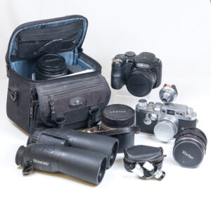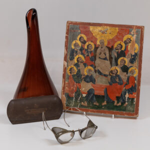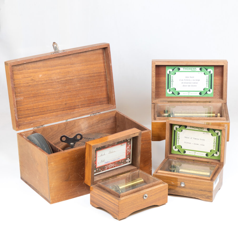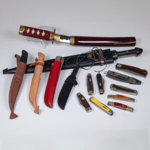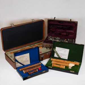 Case & Collectibles: Vintage wind instruments including a wooden clarinet and various recorders from student to professional, soprano to bass. Makes include but not limited to, Moeck, Dolmetsch, Klingon, Yamaha and others. Also three acoustic guitars with cases. One Paracho elite and a Pachanga R5 6 string tres natural ( 3sets of 2 strings) and a Taurus (1969 dated) six string Flamenco or Cuban style guitar in various states of condition. Added photography items, including an older Leica iii in fine condition, Fuji Film FinepixS, Canon EOS, Yashica mid format and various makes of lenses. Thorens music boxes, two 2 song, one 4 song (as-is) and a polyphone with ten disks. Collection of knives including folding and fixed blade examples. Makes include but not limited to, Ka-Bar, Case, Smoky Mountain Knife Works and several various Swedish made fixed blade knives. Plus more. MCM Pottery including a nice Swedish tri- lobe bowl by Carl Harry Stålhane for Rostrand cir. 1950’s-60’s. A Baccarat crystal ball with brass stand. A Shreve & Co. sterling candle stick. Also sterling S&P’s and a nice red enamel silver spoon. A 1950’s Steiff fox themed hand puppet. Grouping of 1950’s Mad magazines.