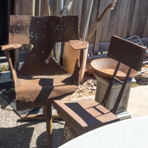 Patio: In our patio department you certainly can’t miss our 14 ft. rowboat, we also have more Restoration Hardware lanterns, set of six Polywood chairs, beautiful and bright oversized glazed pot, collection of handmade metal garden art, handmade metal riding saddle holder, Satsuma garden seat, very large and breathtaking Californian nephrite Jade mineral and many seating arrangements outdoor sun pleasure.