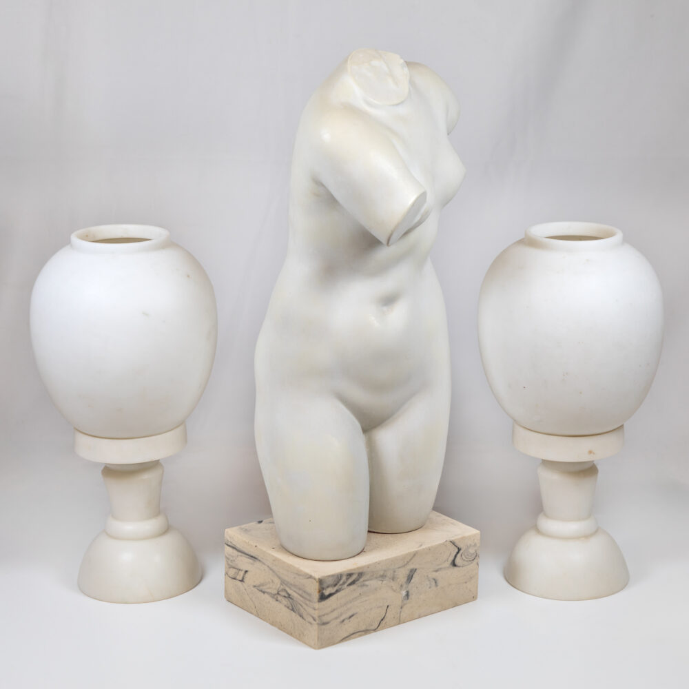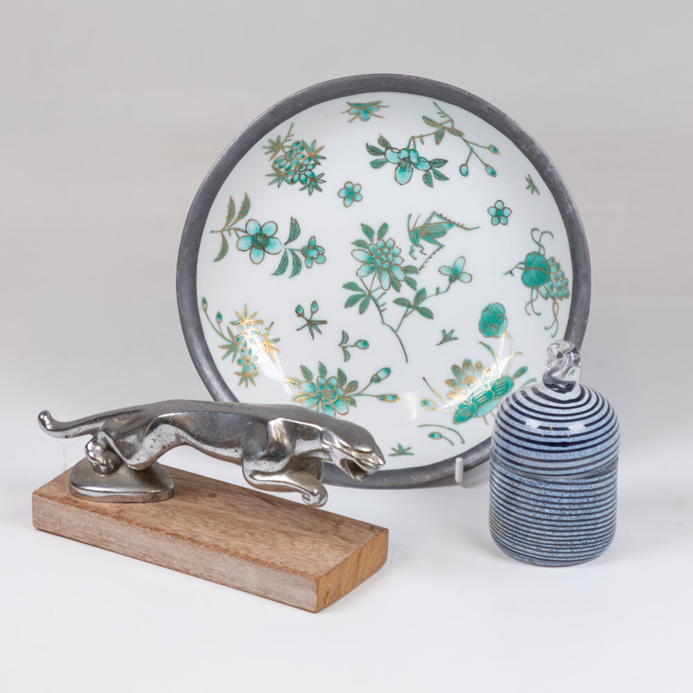 Household and Decorative Arts: We have exciting new additions to our decorative arts/household department. We have an expansive collection of beautiful vintage and mid century pottery and ceramics including Heath, Dansk, Brock Ware California, and many other signed pieces. Other pieces include duck decoys, glass Japanese fishing floats, Bose radio, Wolf Form Co. collapsible model 1985 mannequin, Torso of Aphrodite sculpture in Alvastone by Alva studios Inc., set of three Belgian cast iron cookware, selection of art glass paperweights, set of Staffordshire ware porcelain figures, antique Moeller thermometer, artists prismascape, Baccarat ashtray, Ford V8 hood ornament, Le Creuset lidded saucepan and oval dutch oven, Arabia (Ruska) and Blue Danube dinnerware, Royal Vienna teacup and saucer and so much more!