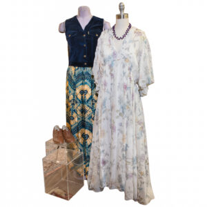 Fashion: New clothing in this sale include a beautiful summer floral maxi dress by Forte Forte, a vintage wool striped cardigan sweater by Christian Dior, vintage smoking jackets, a Falcons letterman vintage sweater by Sand, clothing by Ulla Johnson, Jil Sander, Johnny Was, Katherine Hamnet, a classic black St. John jacket style dress, a vintage Oscar de la Renta wool vest, new jeans by L’Agence, a cashmere and fur sweater by Pamela Dennis, shoes by Freda Salvador, Forte Forte, Birkenstocks, Dries Van Noten and an exquisite vintage beaded peacock blue evening bag.