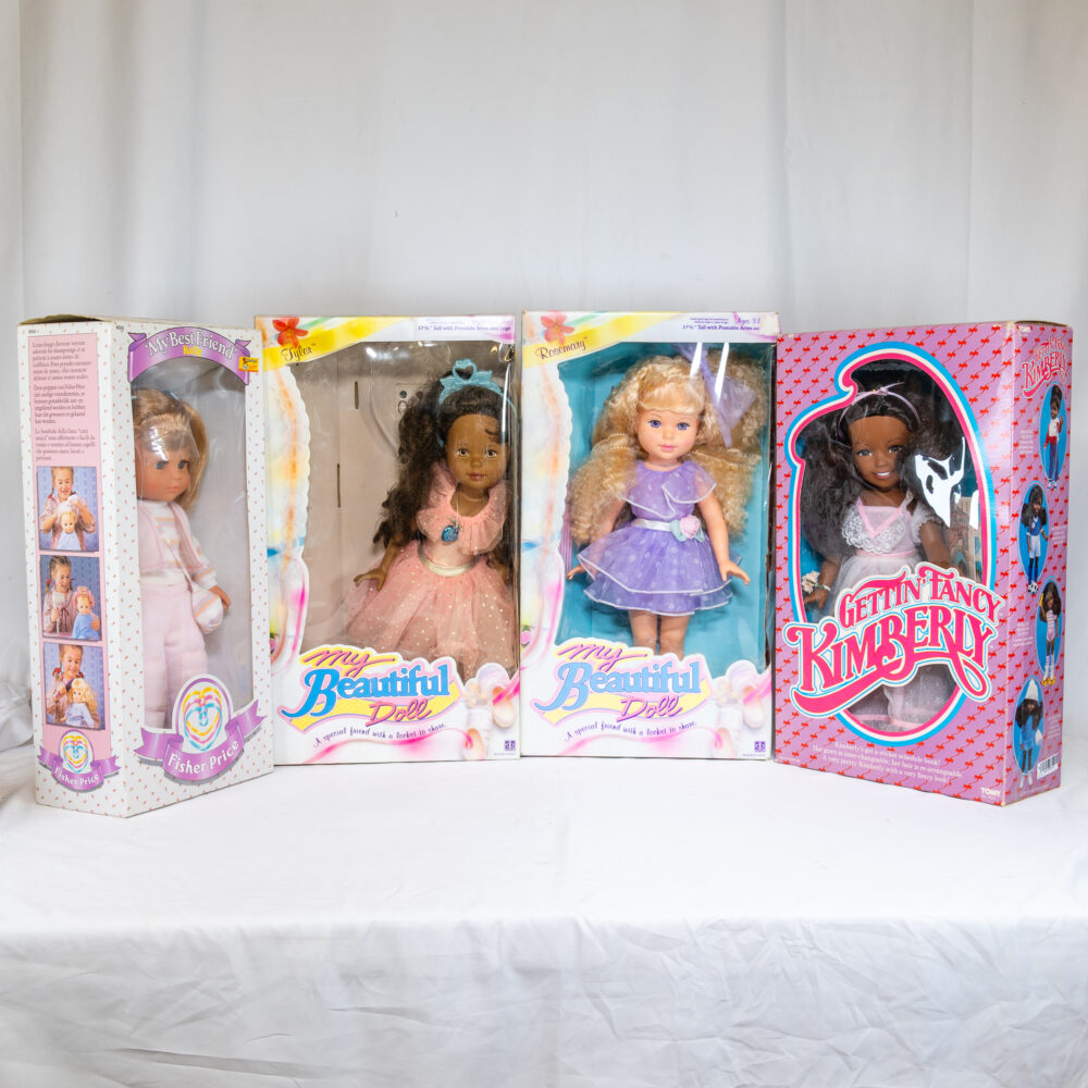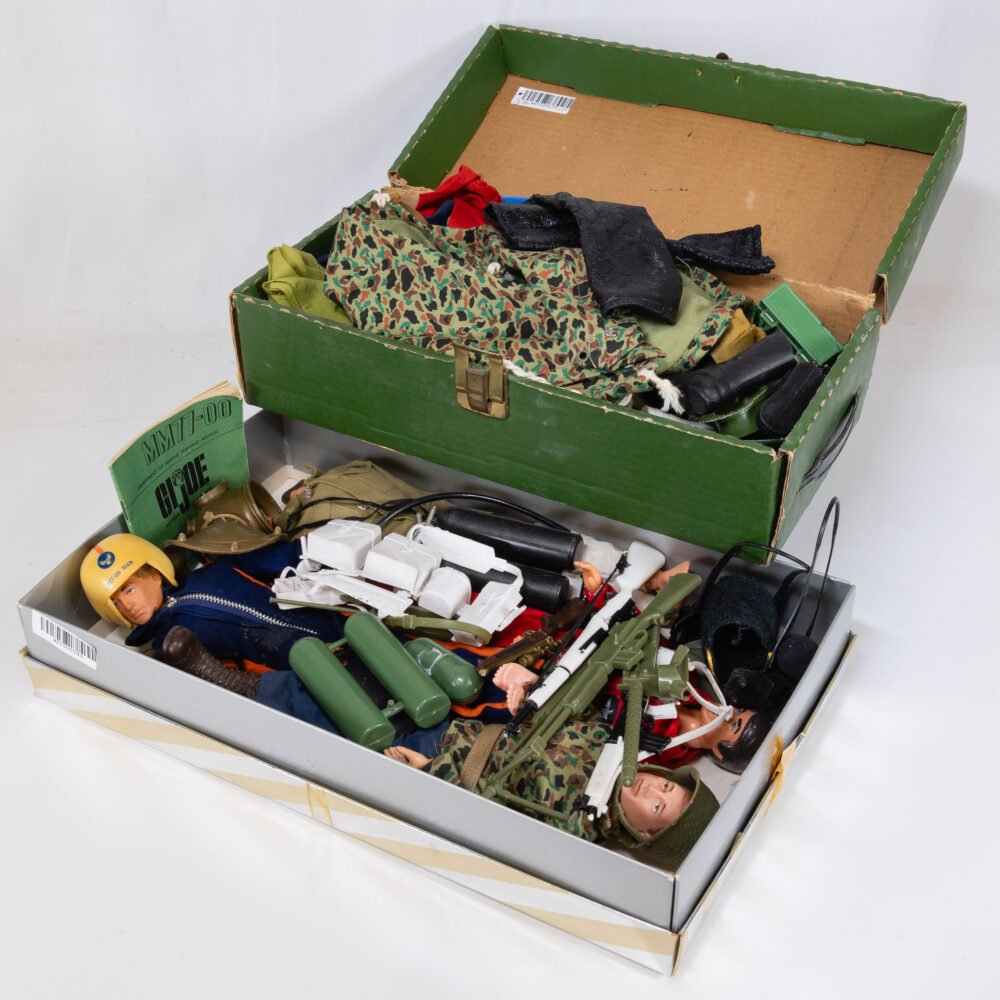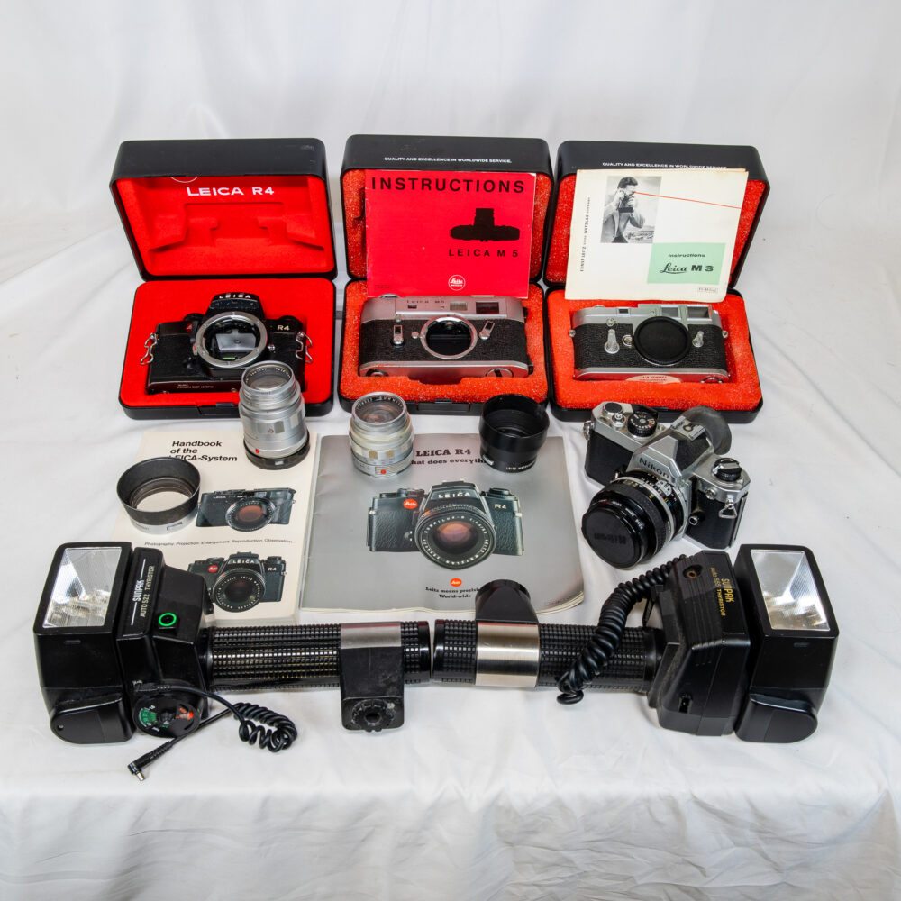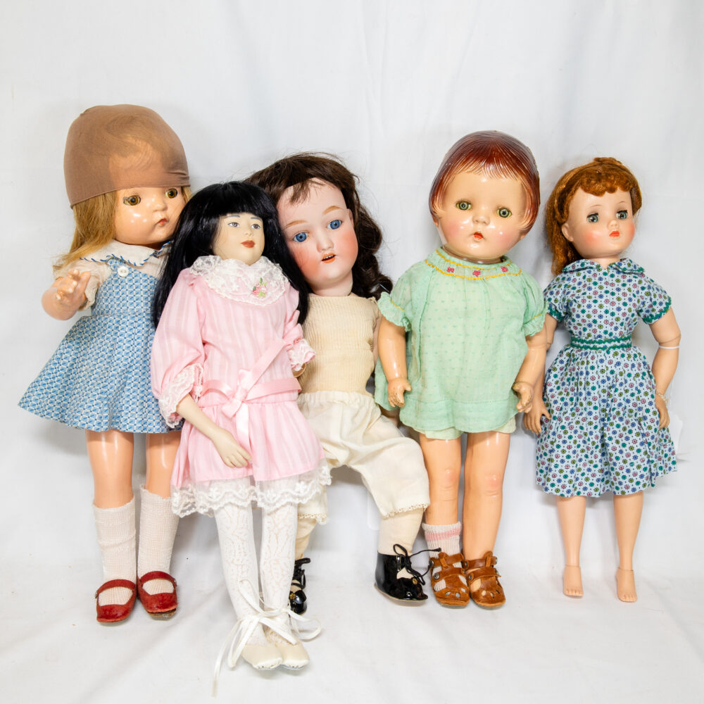 Case & Collectibles: US silver and gold coins including US five dollar gold coins, four ounce silver bars in the form of US one and 10 dollar notes. Assorted silver coins including Morgan and Peace dollars. Gold (14 and 18) carat gold cufflinks and cufflinks/ stud sets. A “Knights of Columbus” fraternal sword. US Army M2 message center clock made by Chelsea Clark company of Boston. Silver (sterling) boxes, candle holders, cigarette case and a few other items. Movie stills, 11x14 reprint photographs by Ludlow collection. US Airlines airplanes art prints collection in binder. A Gerber Yam-Su cleaver. Camera and photographic related items Including but not limited to; assorted Leica camera bodies and lenses, a Nikon FM, Nikon 55mm lens, Vivitar telephoto Tamron lens, cinema (movie camera) lenses some with original boxes and more. A Steiff hedgehog couple. A large Baccarat “harmonie” vase, Murano art glass birds and other signed art glass items scattered throughout the showroom. A Halliburton brief case. A mod Fabienne Joubin (Paris) lidded jar. A US Army Bakelite (ships clock). A nice cast iron Hubley bulldog doorstop. Baseball collectables (mostly cards and signed balls) marked down to sell, books on various world fairs from both sides of the 1900’s. Assorted French Limoges boxes. An autographed Phyllis Diller 8x10 caricature photo print. Dolls, dolls, dolls, including but not limited to; Effanbee, Götz, Barbie, GI Joe (original series), American Girl and other older bisque and porcelain dolls. Dolls clothes and trunks, tea sets and misc. related doll items.