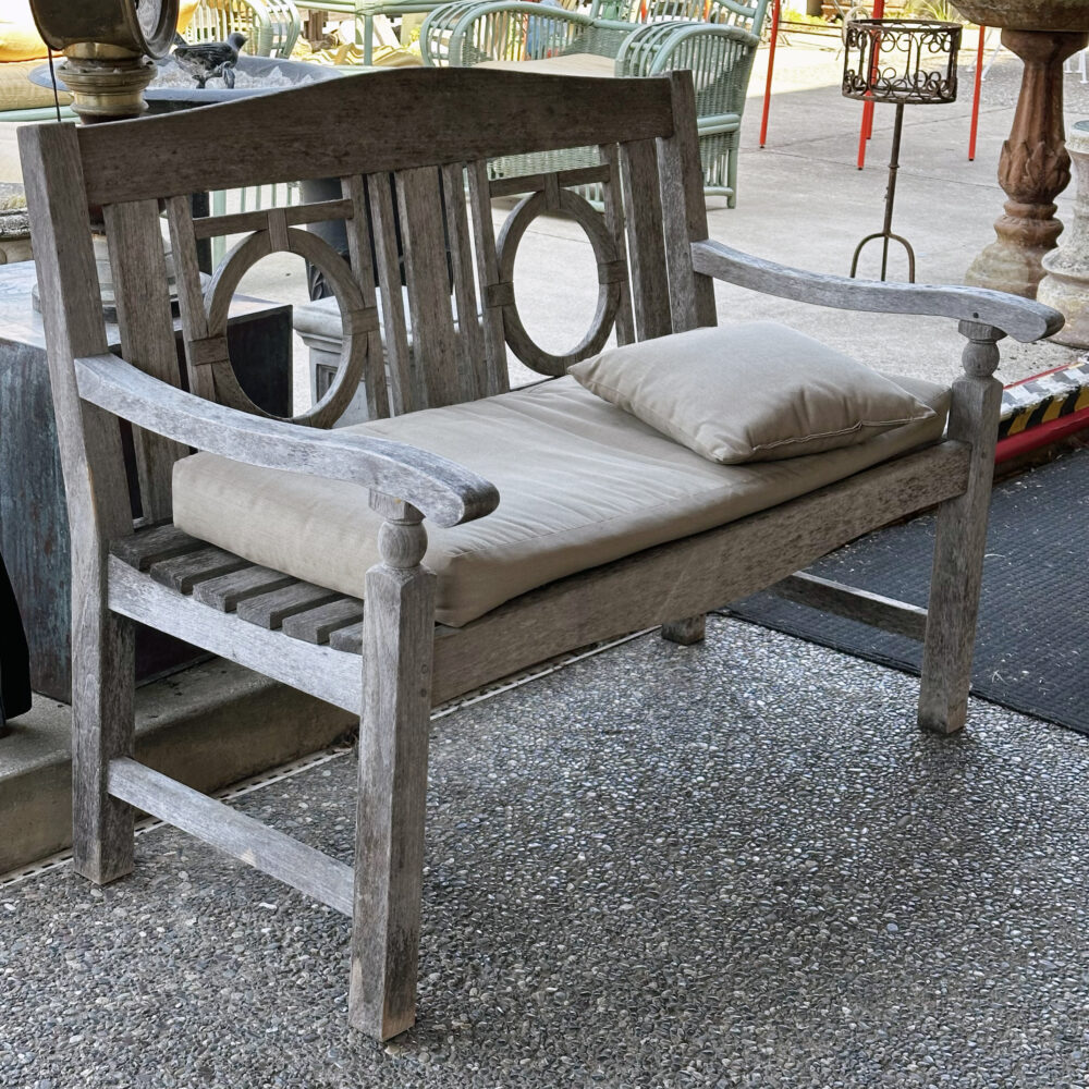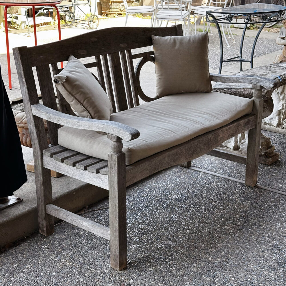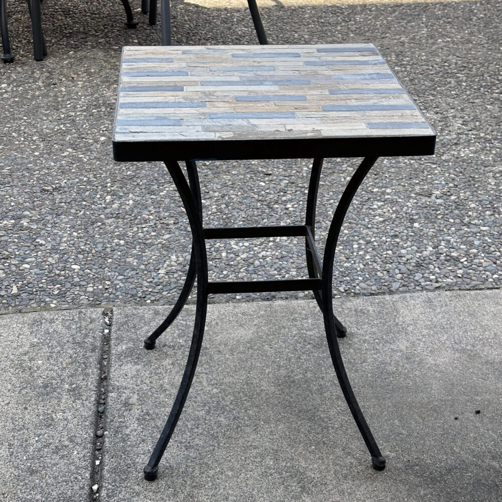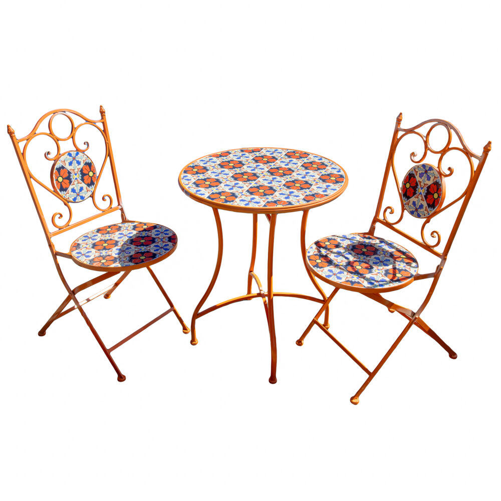 Patio: Summer is in full swing so why not enjoy it seated at your hand-painted Italian glazed stone table! Other patio pieces include a St. Petersburg mosaic bistro set, pair of orange metal patio tables with glass tops, a larger than life candle lantern, floral painted can for garden cuttings or whatever you like, a pair of teak benches with cushions and assorted pots and urn.