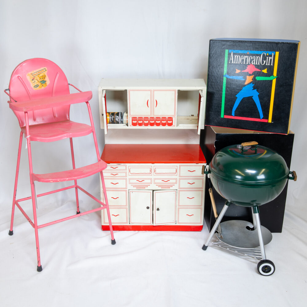 Household and Decorative Arts: We have an abundance of new unique and wonderful decorative pieces just waiting for a new home. Standouts include dishware from Noritake, Wood and Sons, English Willow and vintage Hazel Atlas. Other standouts include a James Friedberg art vase from the Kernel Series, a Valerie Surjan for Michael Nourot cameo glass koi vase, Bose CD player, selection of Venetian masks, large Baccarat cylinder vase, assorted woven baskets, beautiful bronze by August Joseph Pfeiffer (1832-1886) signed and titled “A Vestal Virgin,” bronze by Harry Hazzard of an Indigenous People with a dancing bear, Lladro titled “High Society,” F.W. Elliott case clock, set of four nesting Pyrex bowls, set of vintage Libbey frosted carousel glasses, black forest style cuckoo clock, an elephant (trunk up) garden stool for good luck! Last but certainly not least a fierce Chinese ‘cloisonne’ tiger.
