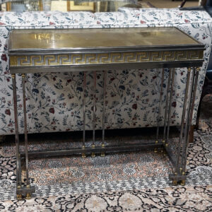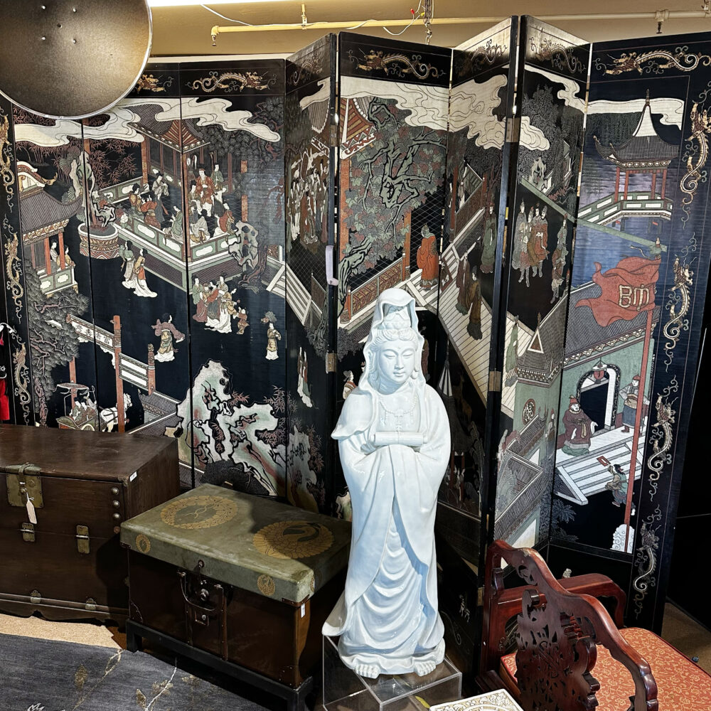 Furniture: If furniture is what you’re looking for, look no further! Our showroom floor is stocked with new pieces. Items include Hydeline leather loveseat, brass and beveled glass two tier coffee table, pair of steel and leather barstools, blue leather recliner, blue leather chair with ottoman, leather wing back chair with ottoman, gorgeous Maitland-Smith game table, Greek key console table, Jane sofa with Cambiaso twilight fabric, wall mounted distressed metal Baroque style console table, 1960s McGuire leather wrapped rattan glass top coffee table with brass accents, set of eight Nolita dining chairs by Desironny, mid-century walnut bookcase, Japanese Kamo tanzu, MCM atomic age sitting chair in the style of Percival Lafer, blanket cedar chest, solid cherry wood and glass bar cart, stainless steel and glass shelving unit and matching side table, extendable modern solid cherry wood dining table, Art-deco oak mirrored coat rack, birdseye maple serpentine dresser with mirror, pair of Louis XV style side tables, 1970s Mastercraft chinoiserie glass table top coffee table, pair of kidney shaped sofas from Flagels, set of six dining chairs by Japanese furniture designer Yuzuru Yama Kawa and many more beautiful pieces you won’t want to miss!