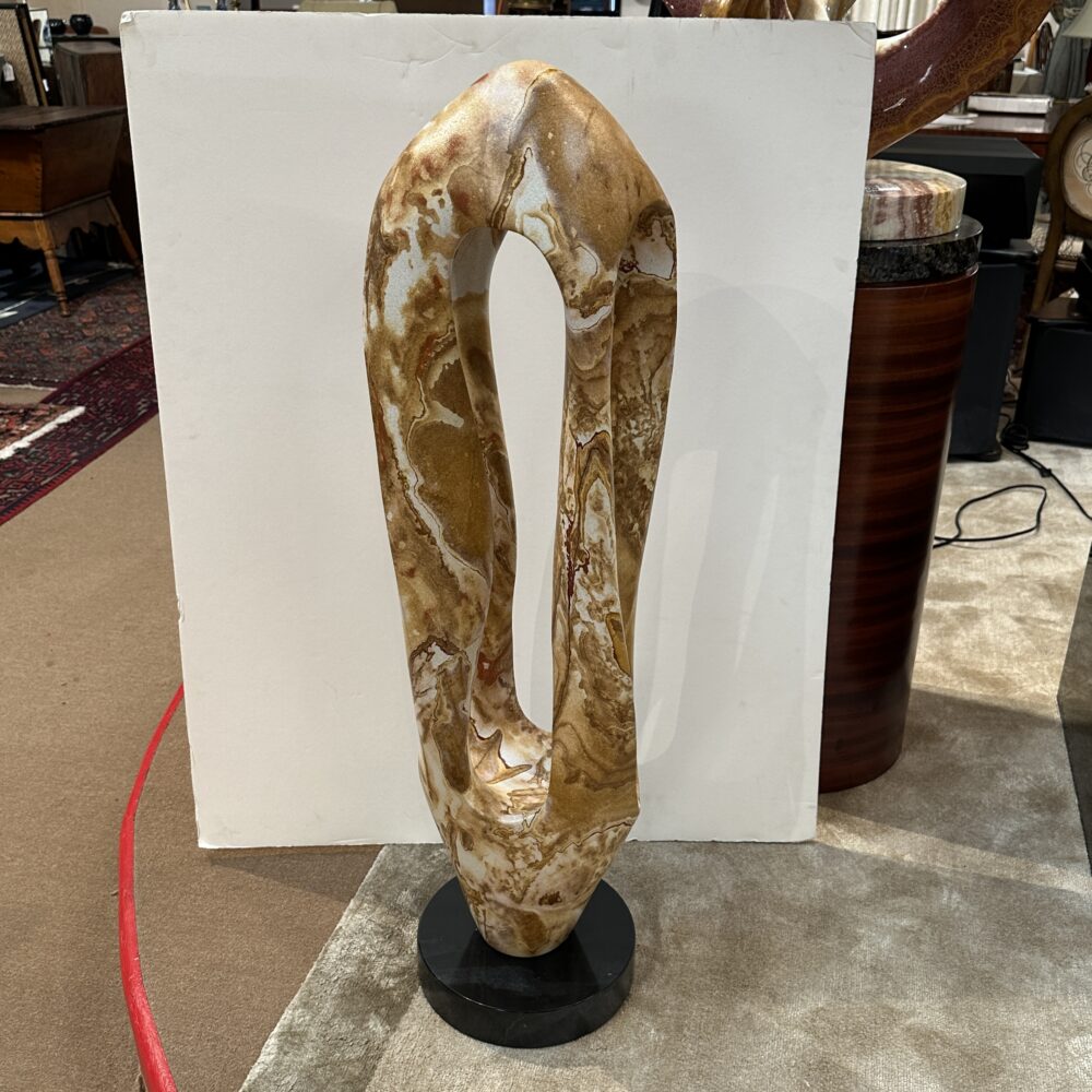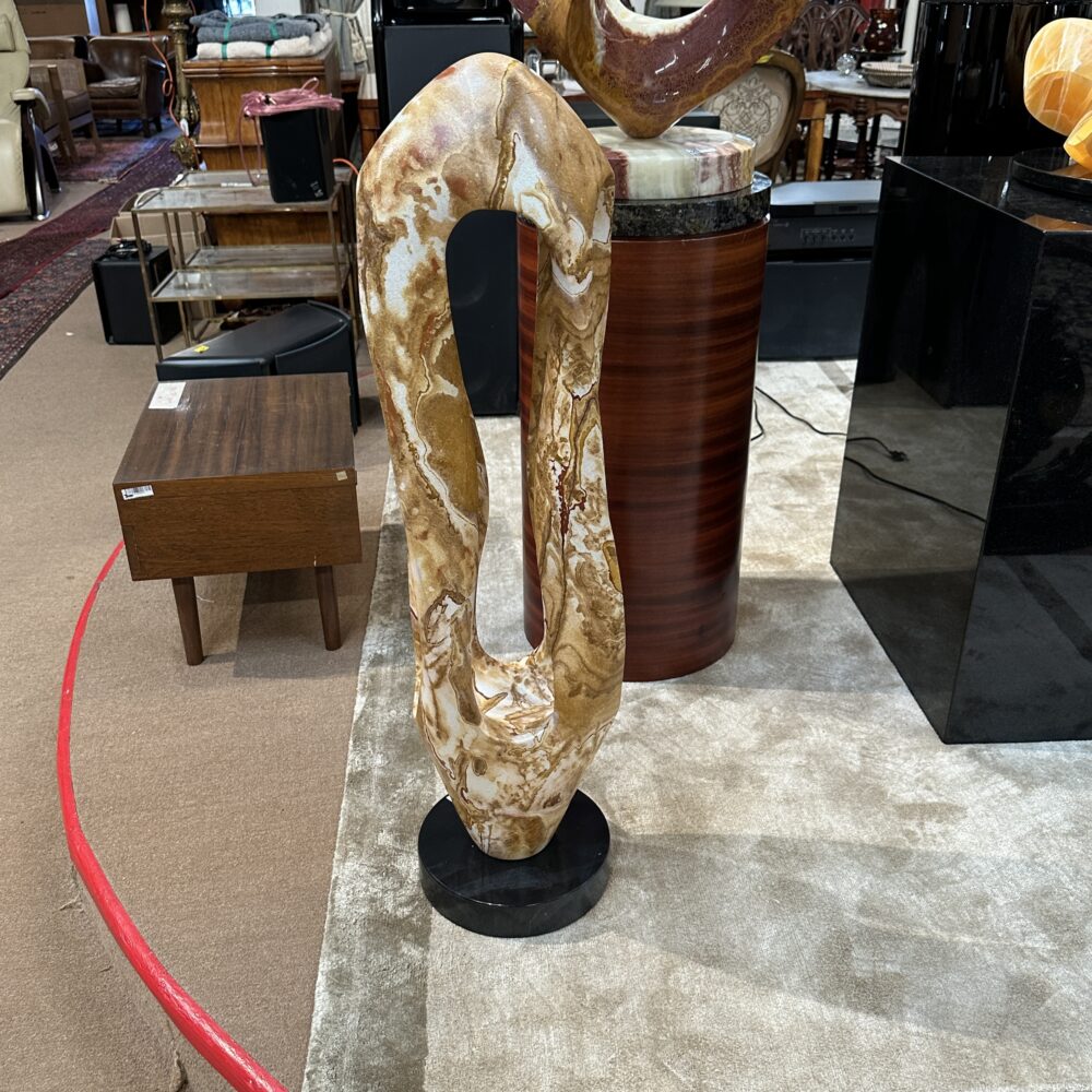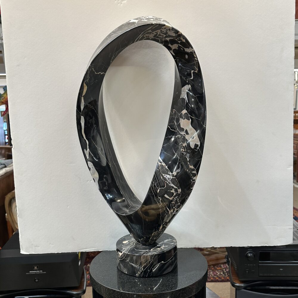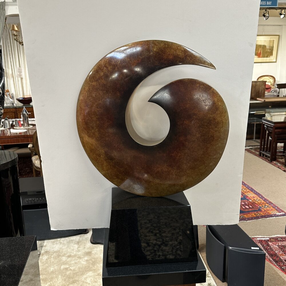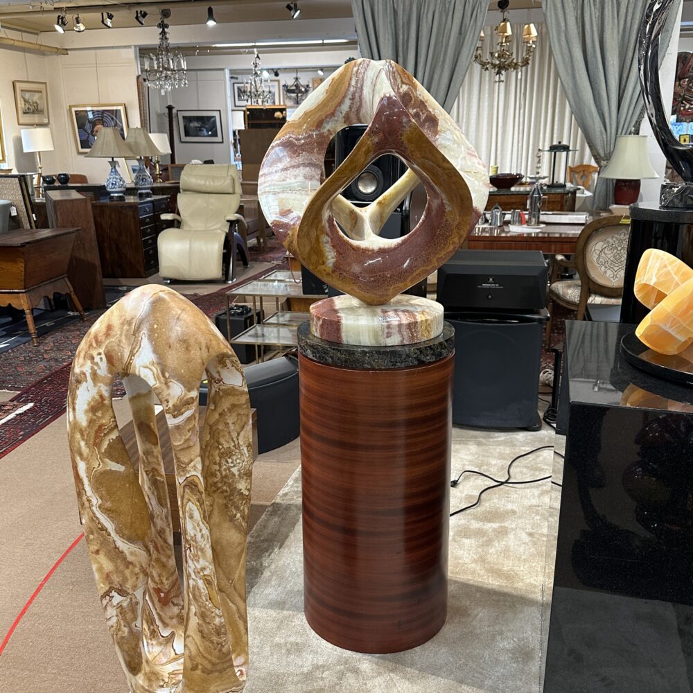 A stunning collection of artistry for the home — stone sculptures by Healdsburg artist T. Barny, bronze “Archer” by Thomas Holland (1967), Turnwood bowl by Jerry KermodeBaccarat stemware, and Arthur Court serving pieces.
