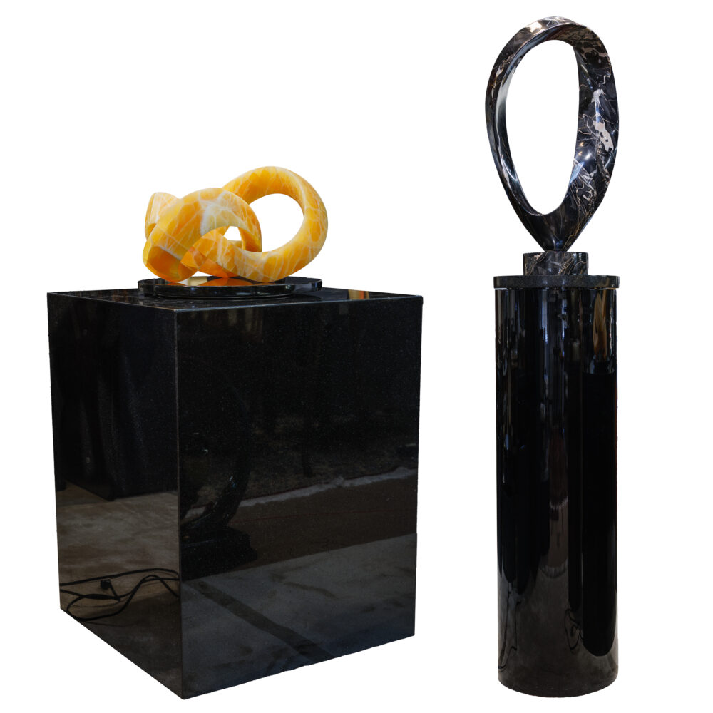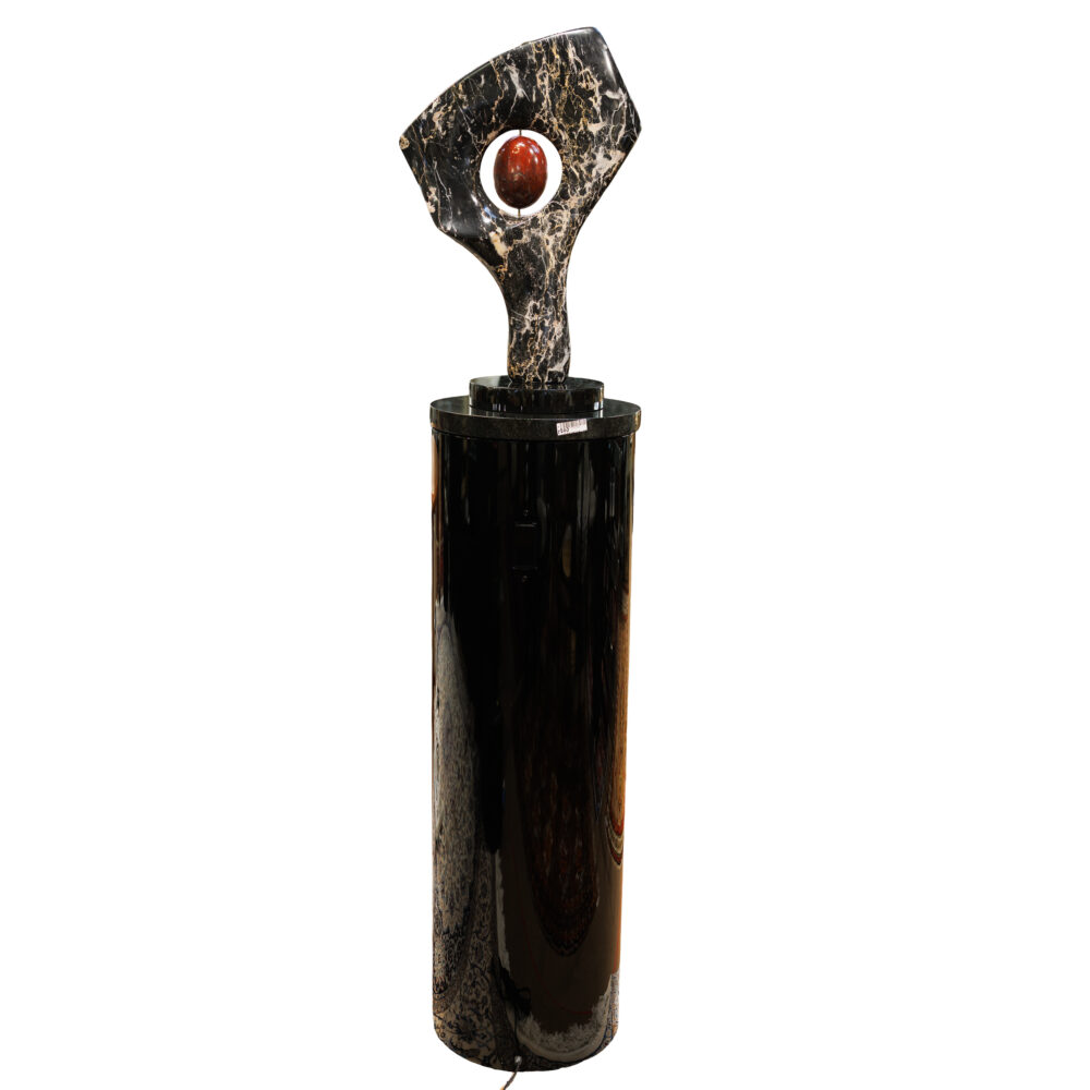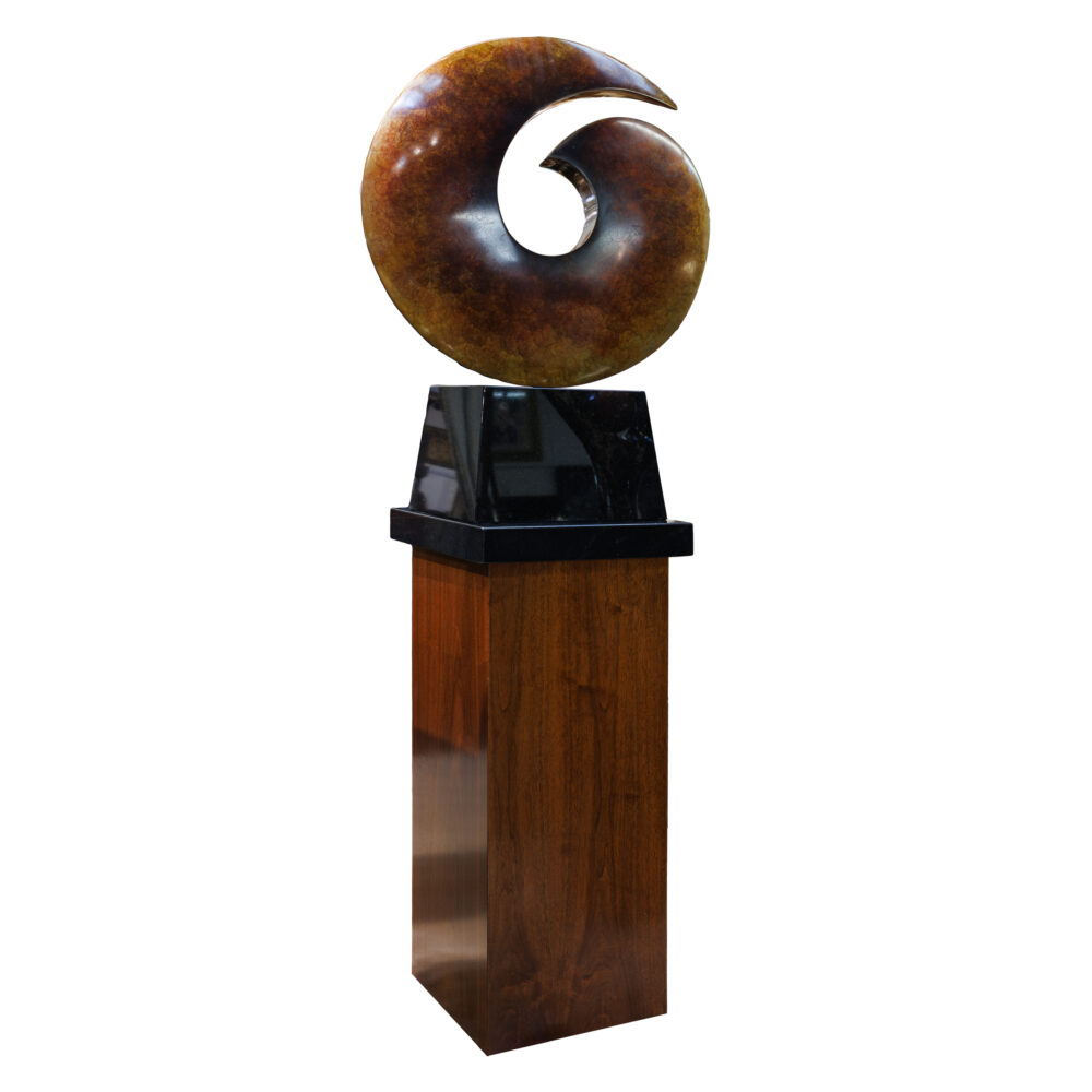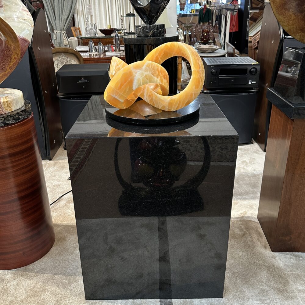 A stunning collection of artistry for the home — stone sculptures by Healdsburg artist T. Barny, bronze “Archer” by Thomas Holland (1967), Turnwood bowl by Jerry KermodeBaccarat stemware, and Arthur Court serving pieces.