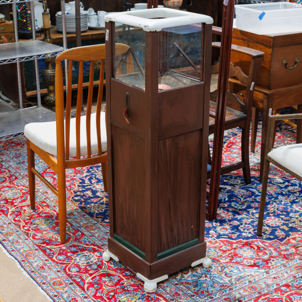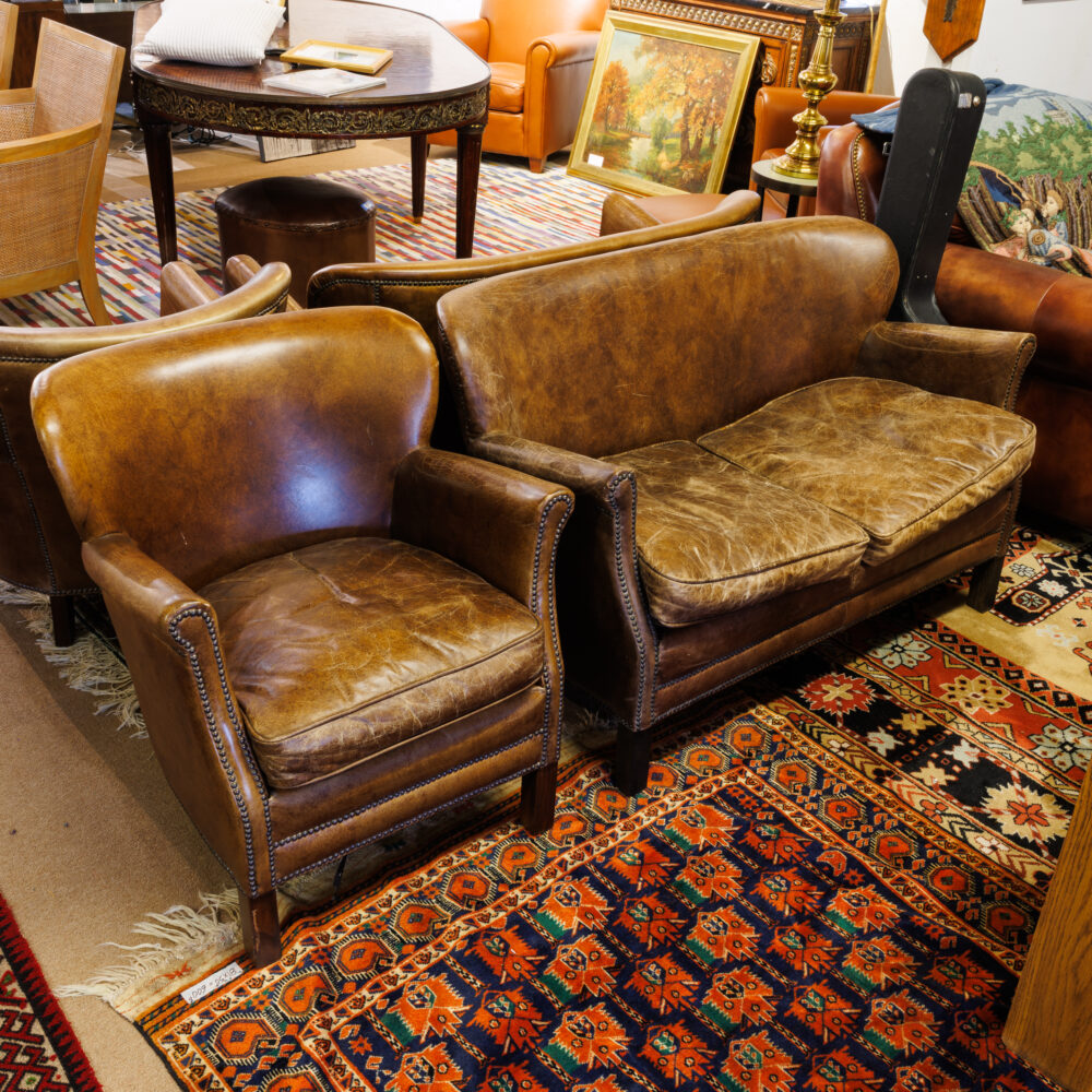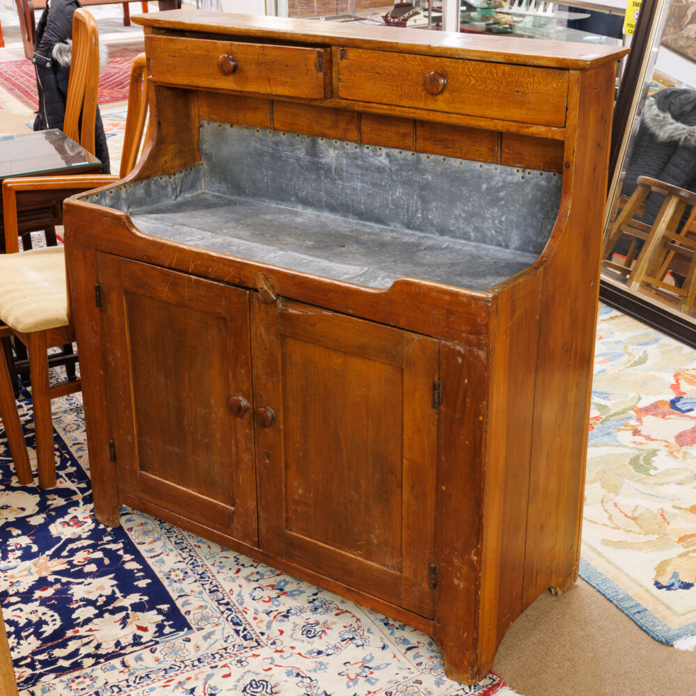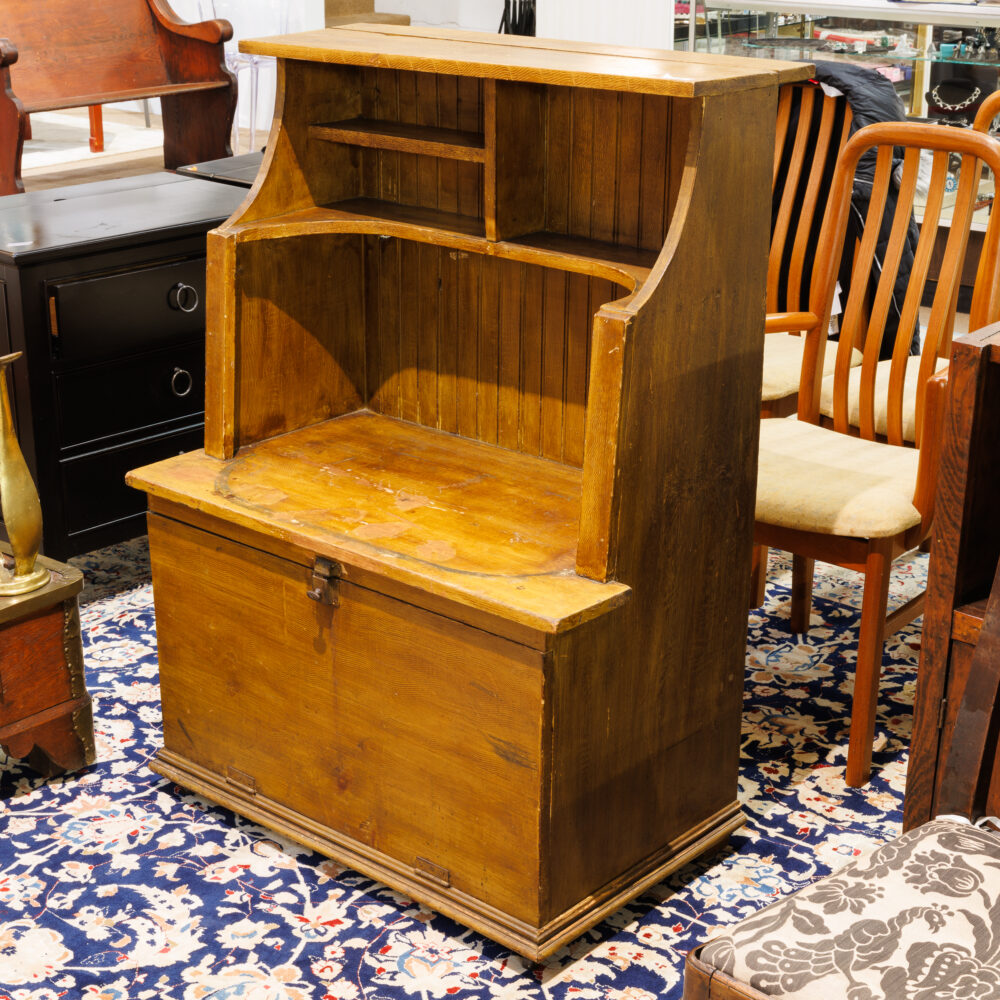 Explore the beauty of craftsmanship with antique pine desks, MCM dining tables, Hollywood Regency LaBarge brass coffee tables, and Federal mahogany dining chairs. Other highlights include antique church pews, Baker modular marble-top dressers, Danish dining chairs, and vintage Dixie wardrobes.