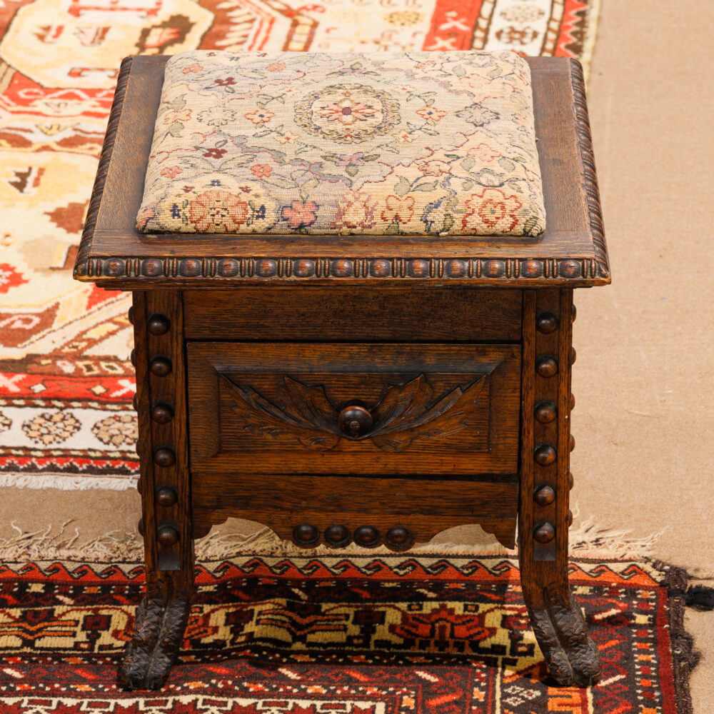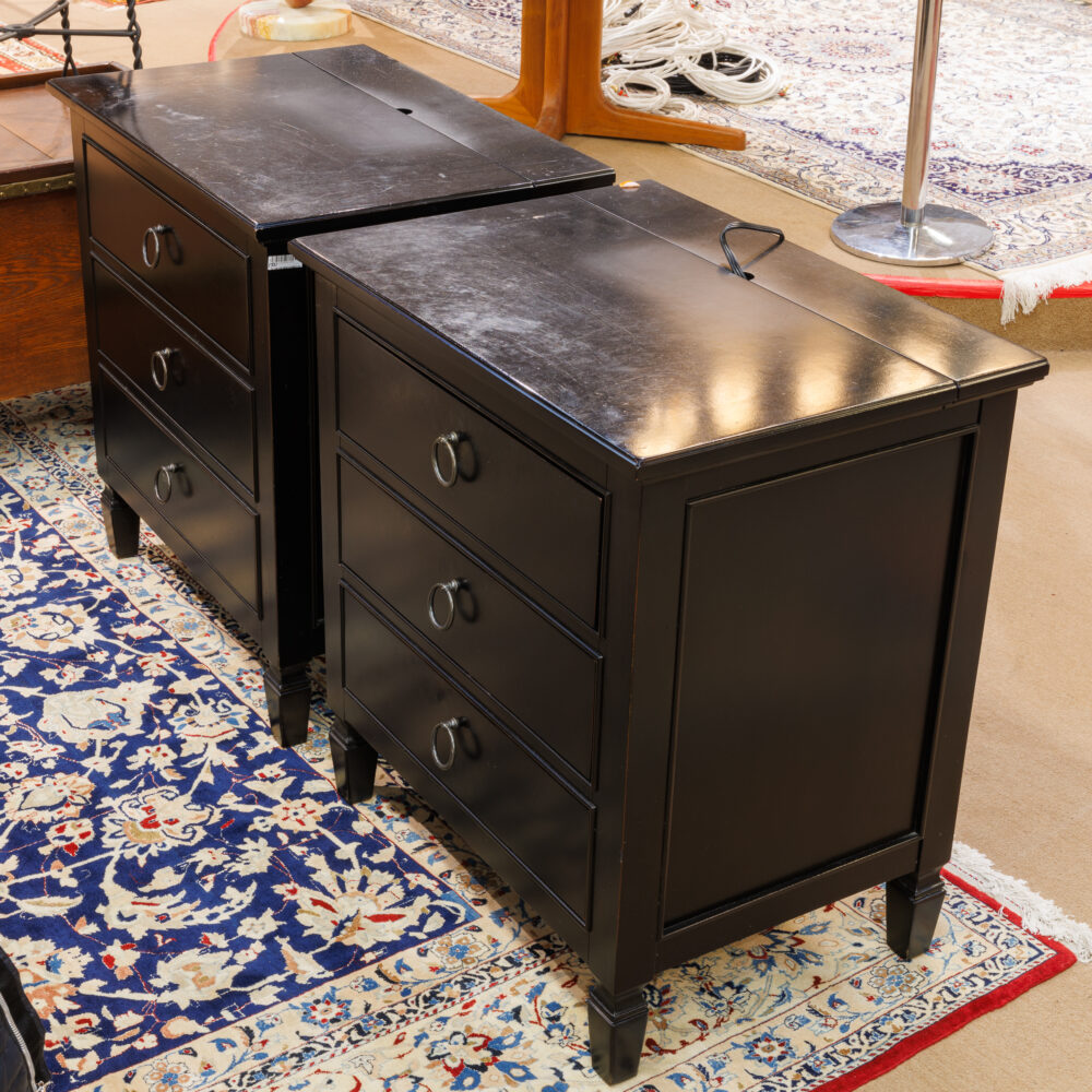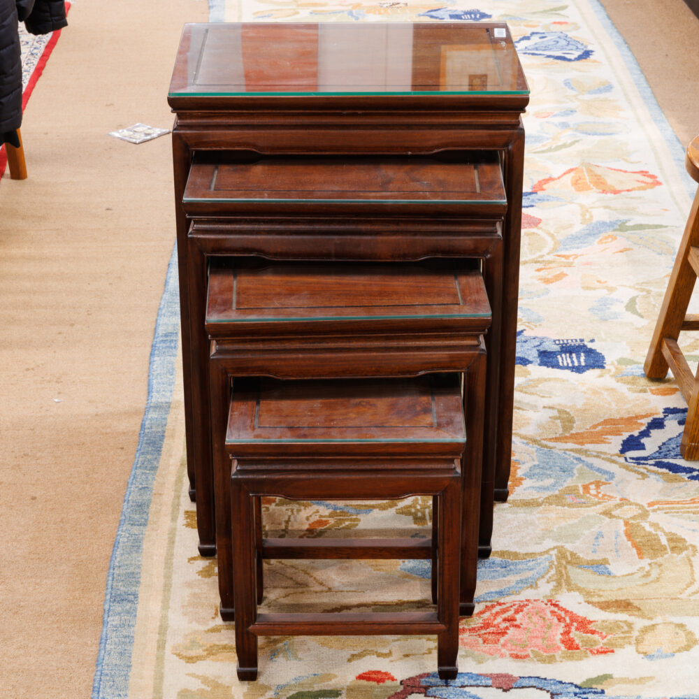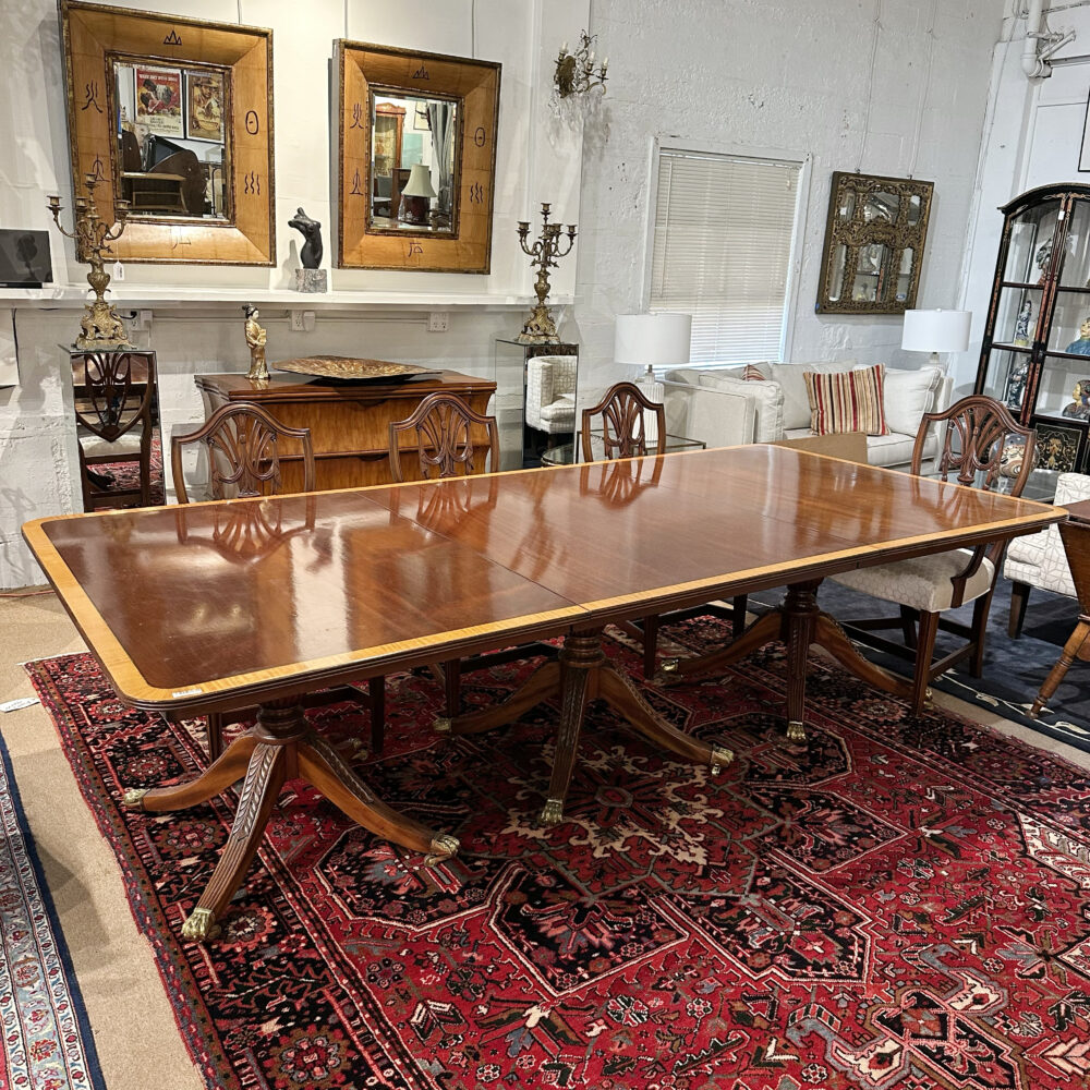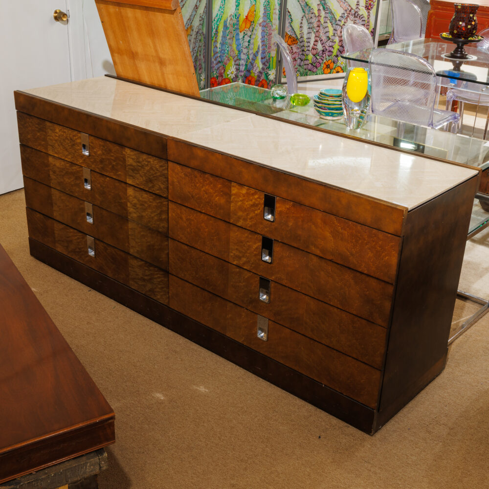 Explore the beauty of craftsmanship with antique pine desks, MCM dining tables, Hollywood Regency LaBarge brass coffee tables, and Federal mahogany dining chairs. Other highlights include antique church pews, Baker modular marble-top dressers, Danish dining chairs, and vintage Dixie wardrobes.