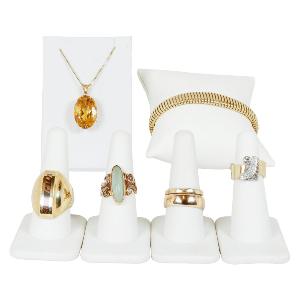 Add classic elegance with 14k Mabe pearl ring and earrings, 14k white gold emerald & diamond ring, green tourmaline & diamond ring, vintage 14k chalcedony ring, 14k citrine pendant necklace, and a curated selection of gemstone pendants, earrings, and rings that shimmer with sophistication.