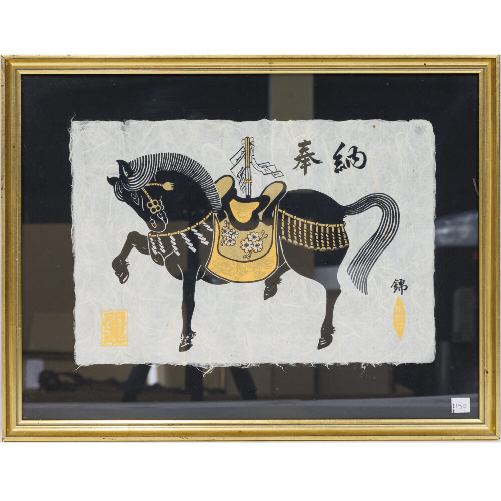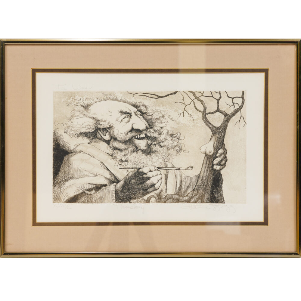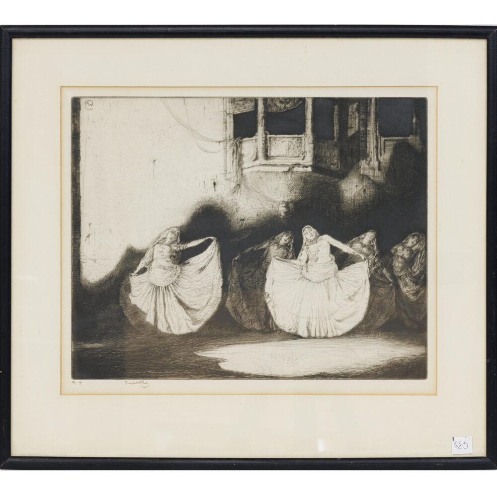 Rare and remarkable works abound — a screen print on burlap by Helen Kalvak, print by Willa Marten, and linocut by Emmy Lou Packard. Collectors will appreciate the offset lithograph portrait of Diego Martelli by Edgar Degas (After), and the wood engraving “Winter in Southampton” by Asa Chaffetz.