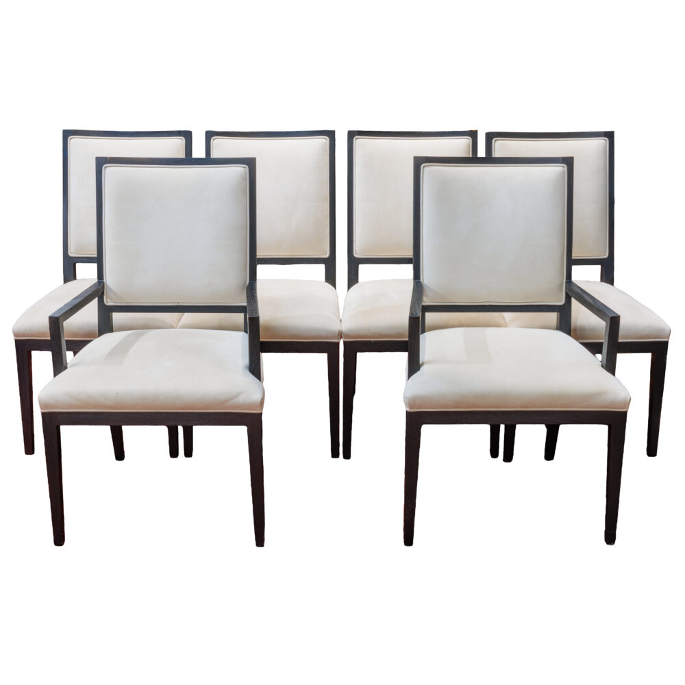 Elevate your interiors with standout statement pieces: the Human Touch Omni Motion PC–600 silhouette leather recliner, Williams-Sonoma Beckett chrome bar cart, Restoration Hardware French dining chairs, and Crate & Barrel accent chairs.