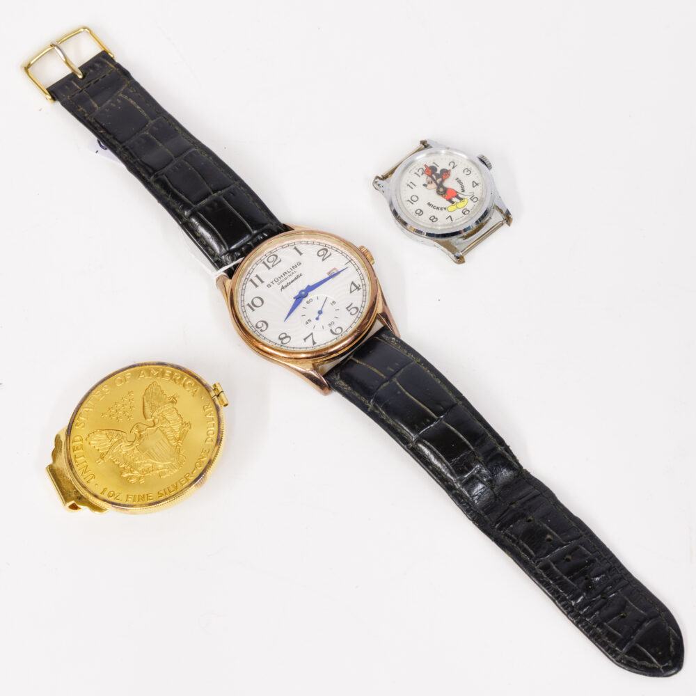 For the collector at heart — Waltham, Elgin, and Stührling watches join a vintage Mickey Mouse watch and ornate 19th-century watch chain. Silver enthusiasts will adore Shreve & Co. candlesticks, a Tiffany “sardine can opener”, Mexican hand-wrought silver bowl, and sterling commemorative coins.