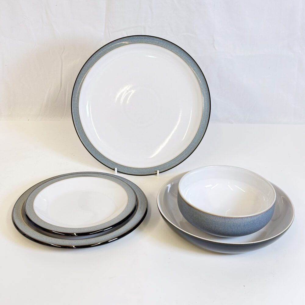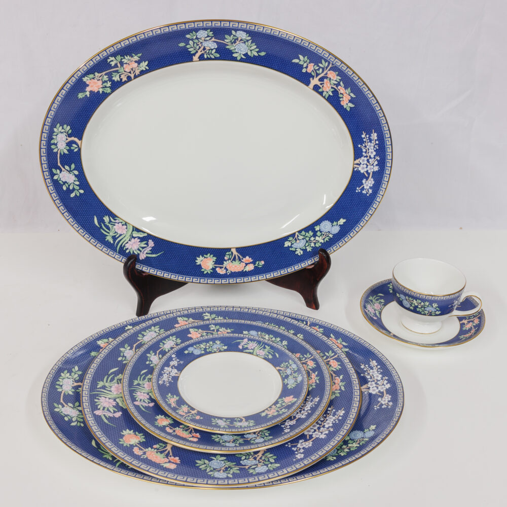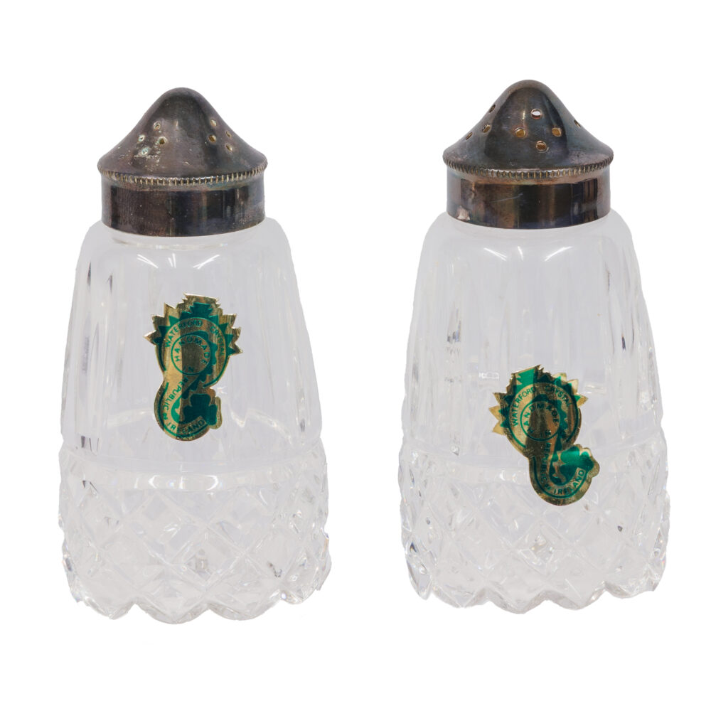 - Dinnerware & crystal: Wedgwood Blue Sham, Noritake Rosalie, Waterford crystal salt & pepper shakers, Arabella wine hock goblets.