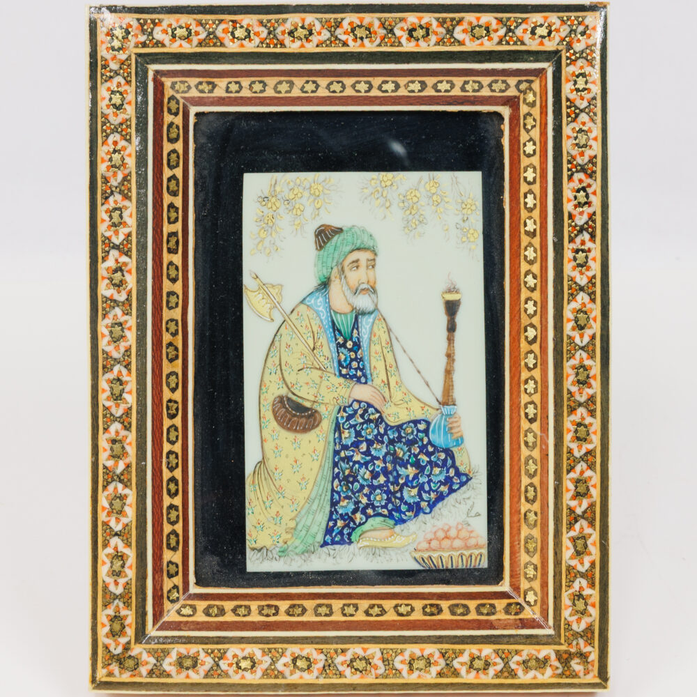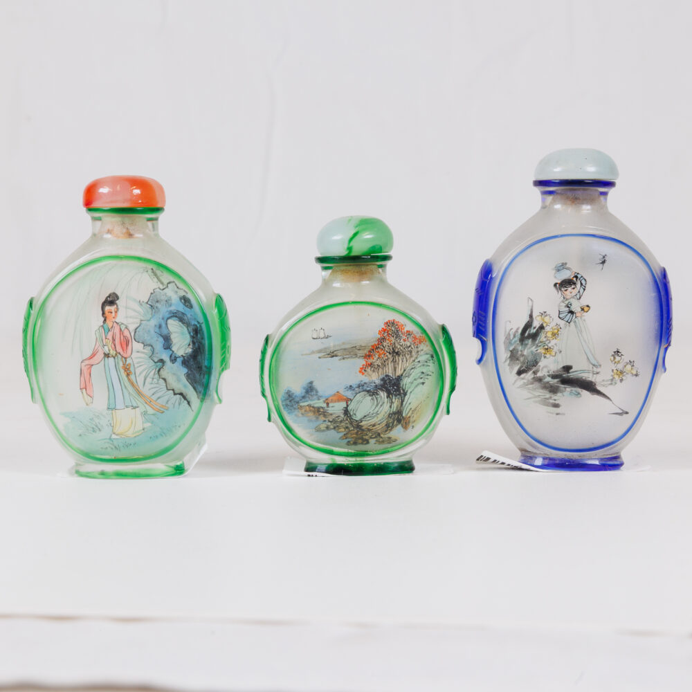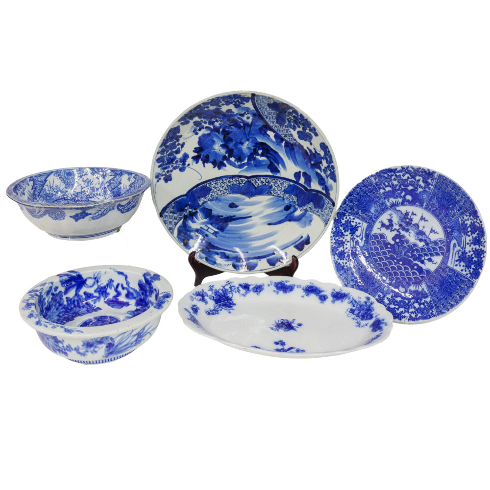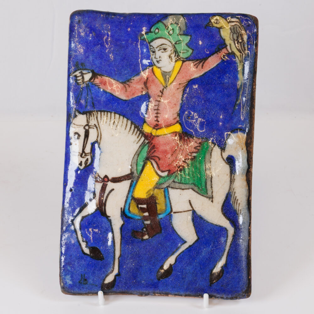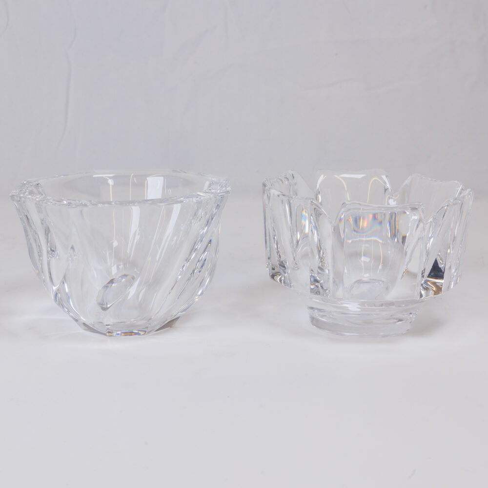 - Glass artistry: Orrefors bowls, Paul Harrie art glass vase, antique Persian Iznik Qajar-style ceramic tile.