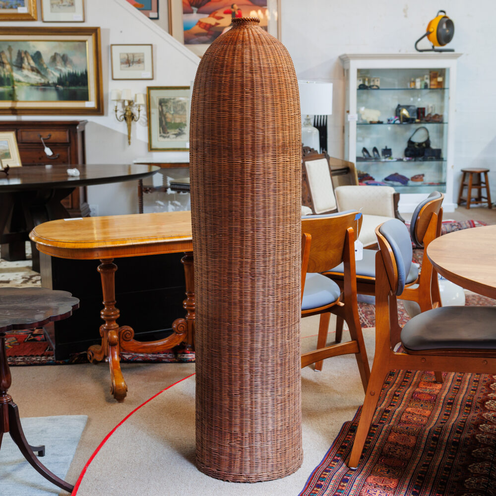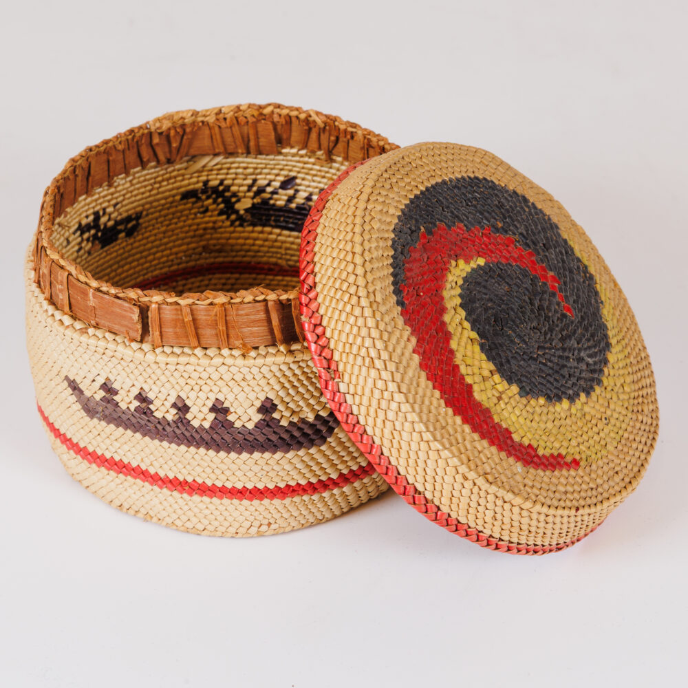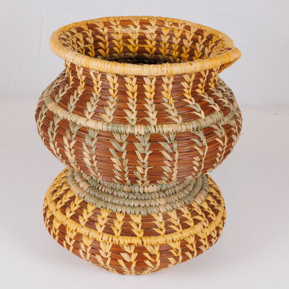 - Handcrafted baskets: Lou Ella Melancon basket, sweetgrass elephant-ear basket by Nathaniel Wright.