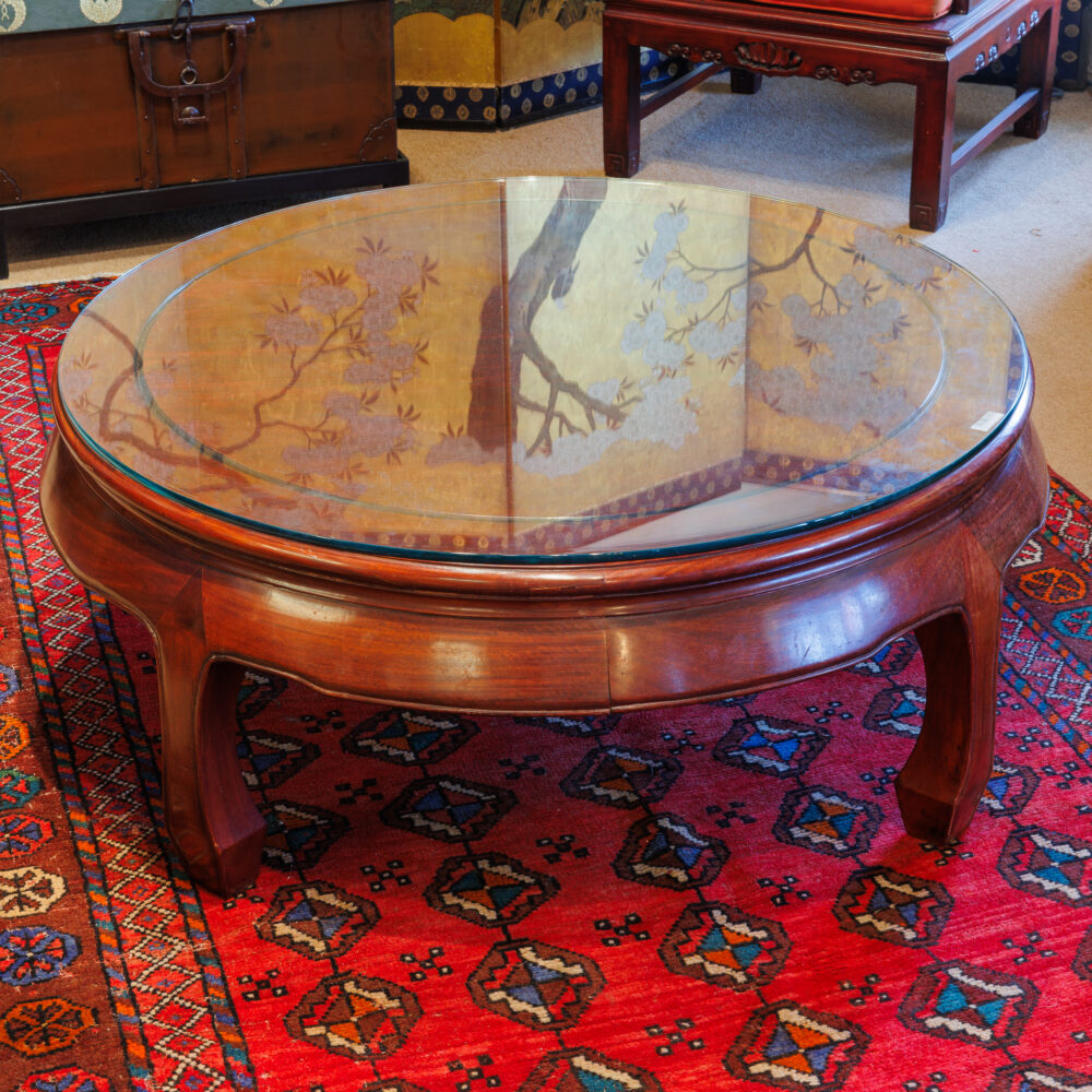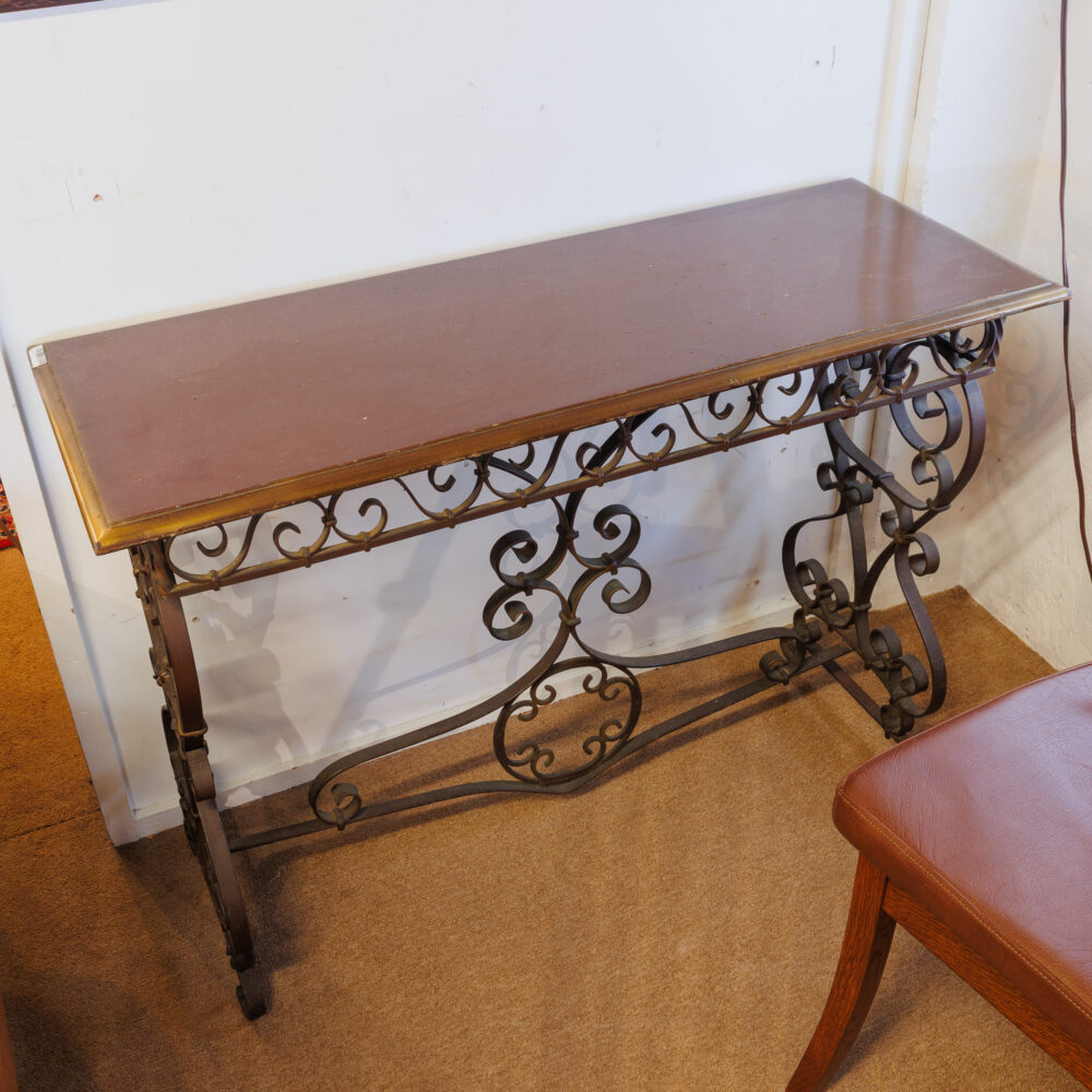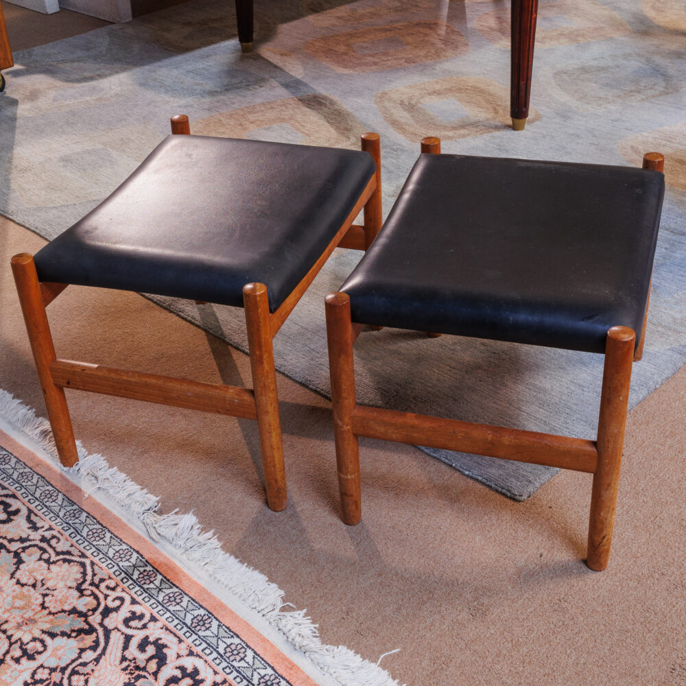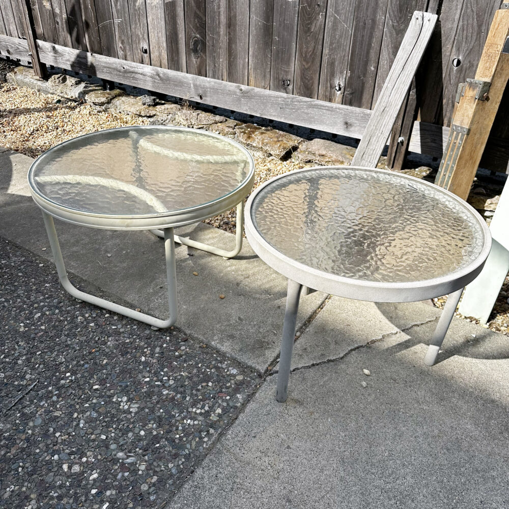 - Unique finds: Travertine side table by Martin Perfit for Rene Brancusi, lucite shelf unit, butcher block cart, lectern book stand, Mission-style table set, Asian-style coffee table, vintage Danish teak stools, antique flour bin table.