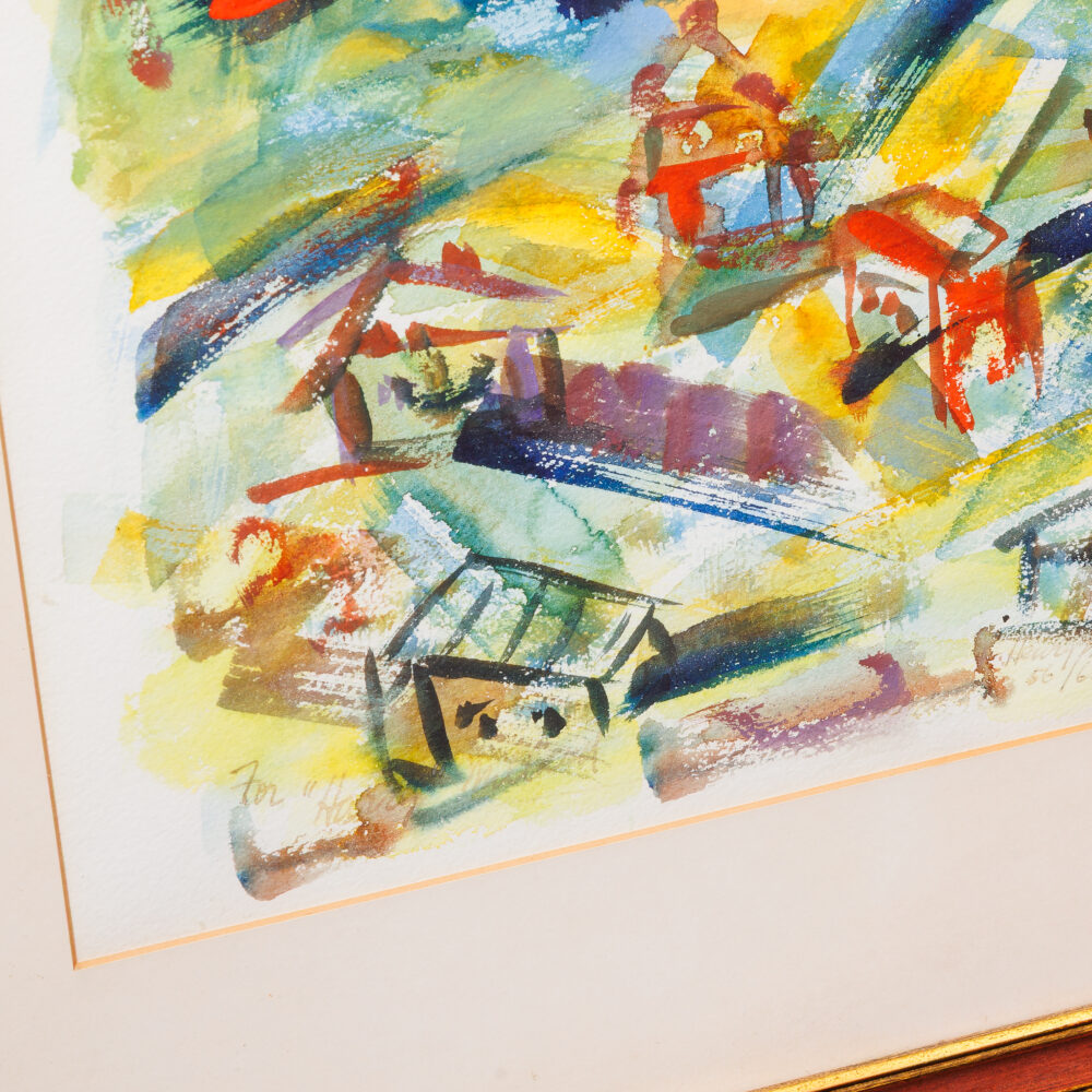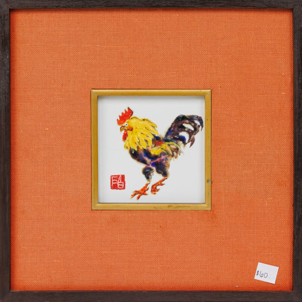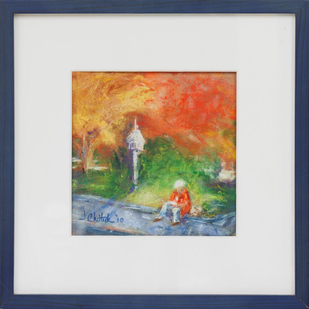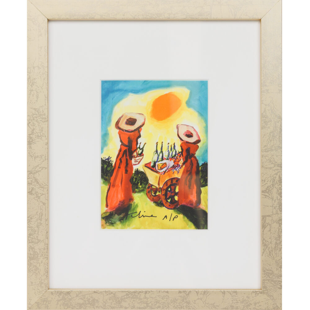 - Vibrant selection: Pastels by J. Chattick, Kingsley Parker’s Watchdogs: 1300 Hrs, Joanna Zjawinska’s Windows, and a giclée of Joyful Harvest by Howard Kline.