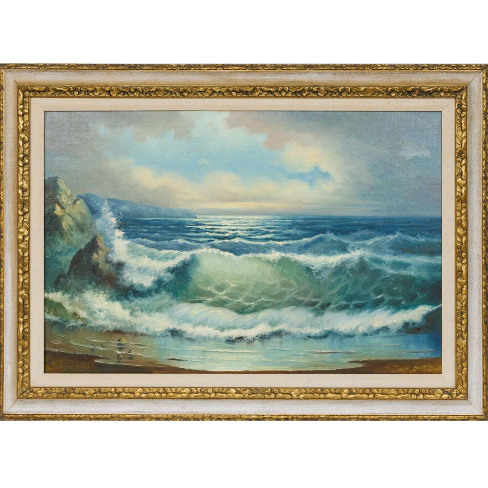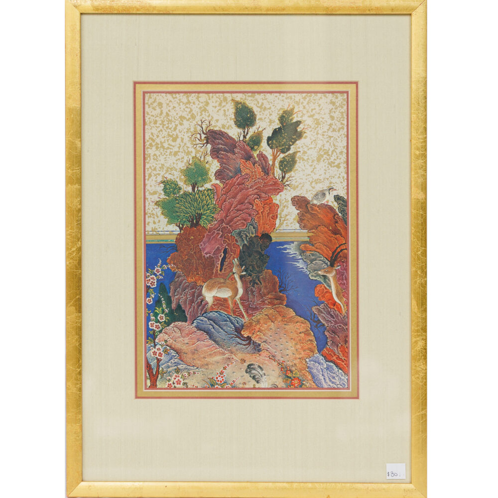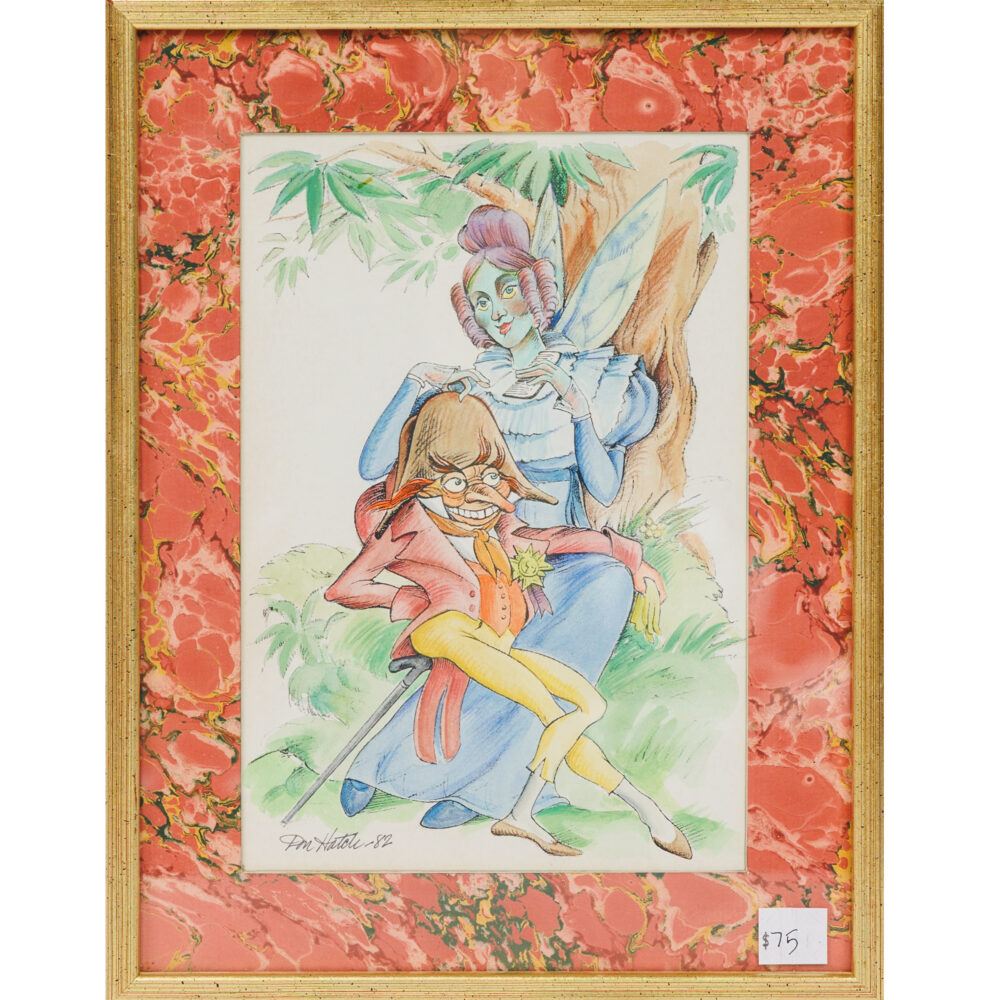 - Original paintings: By Maurice Harvey, Julius Grodner, Henry Miller, Servando Garcia (Red Room), Irina Alexandrina (Montmartre Hill View), Anne Burke (Green + Red Seedpod, 1992), Pamela Hahn (Ridge Walk), Frank Rakoncay (Lady Walking Dog), Laura Hoffman (Ain’t That Nice), Cyndra Bradford (horse portrait).