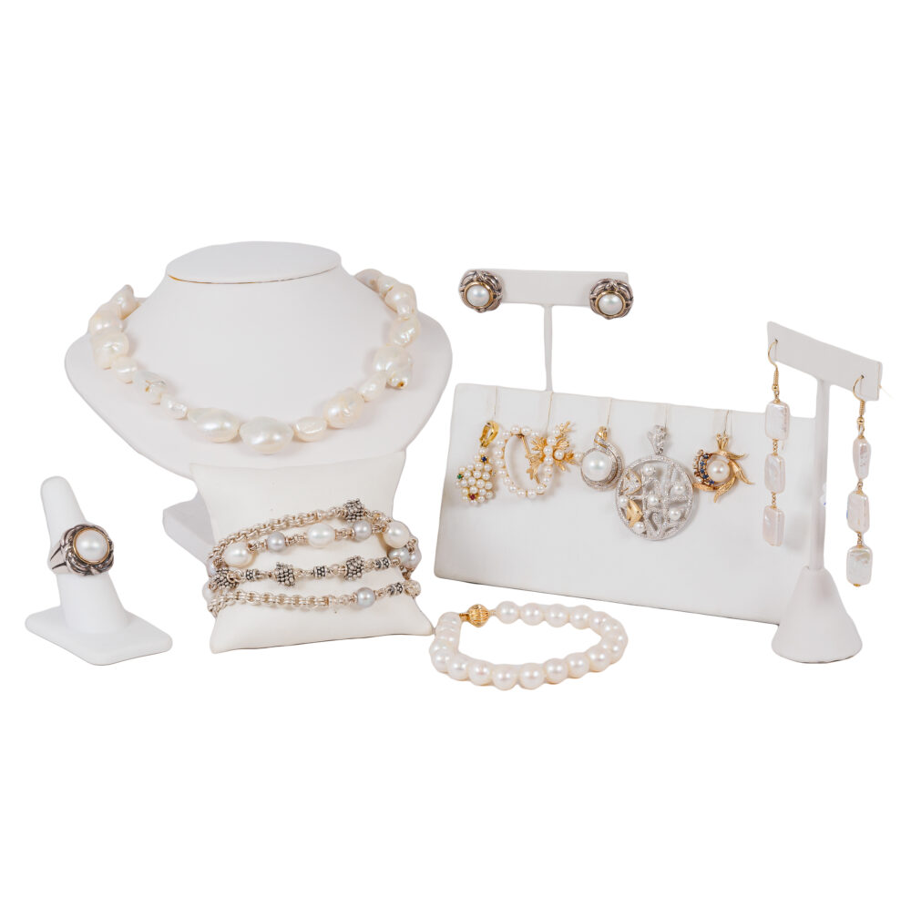 - Pearl perfection: Jeweled panther pearl bracelet, 14k & sterling artisan pearl ring and button earrings, Michael Dawkins multi-chain freshwater pearl bracelet, baroque pearl necklace, and other lustrous strands.