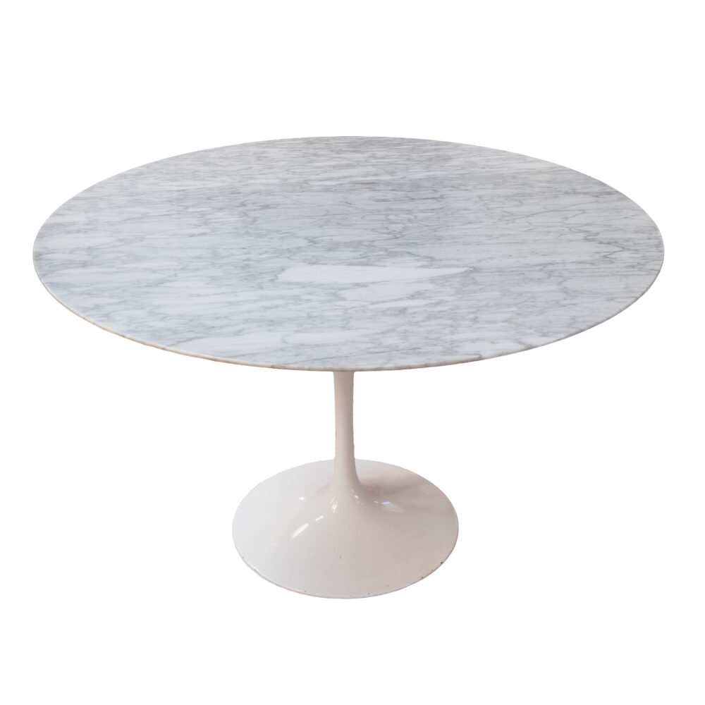 - Mid-century icons: Marble-top Saarinen tulip table, John Stuart dresser, Domino Mobler server, Spottrup Danish stools, Danish lounge chair.