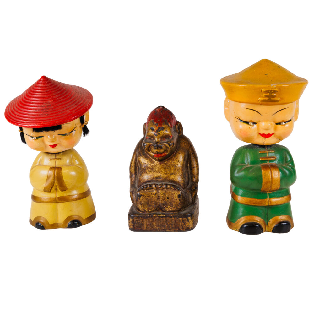 - Global flair: Tibetan copper plaque, brutalist owls in Curtis Jere style, framed taxidermy butterfly, dragon-handled porcelain pitcher by SM Alfred Stellmacher.