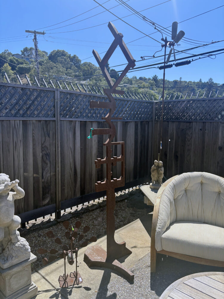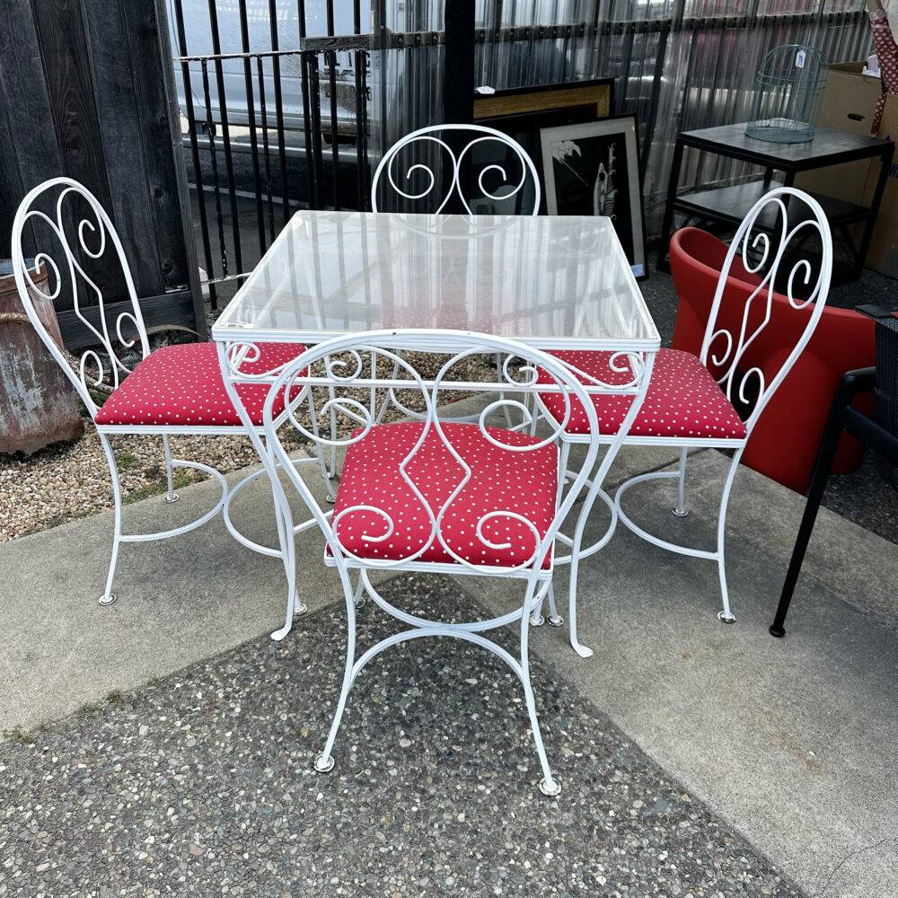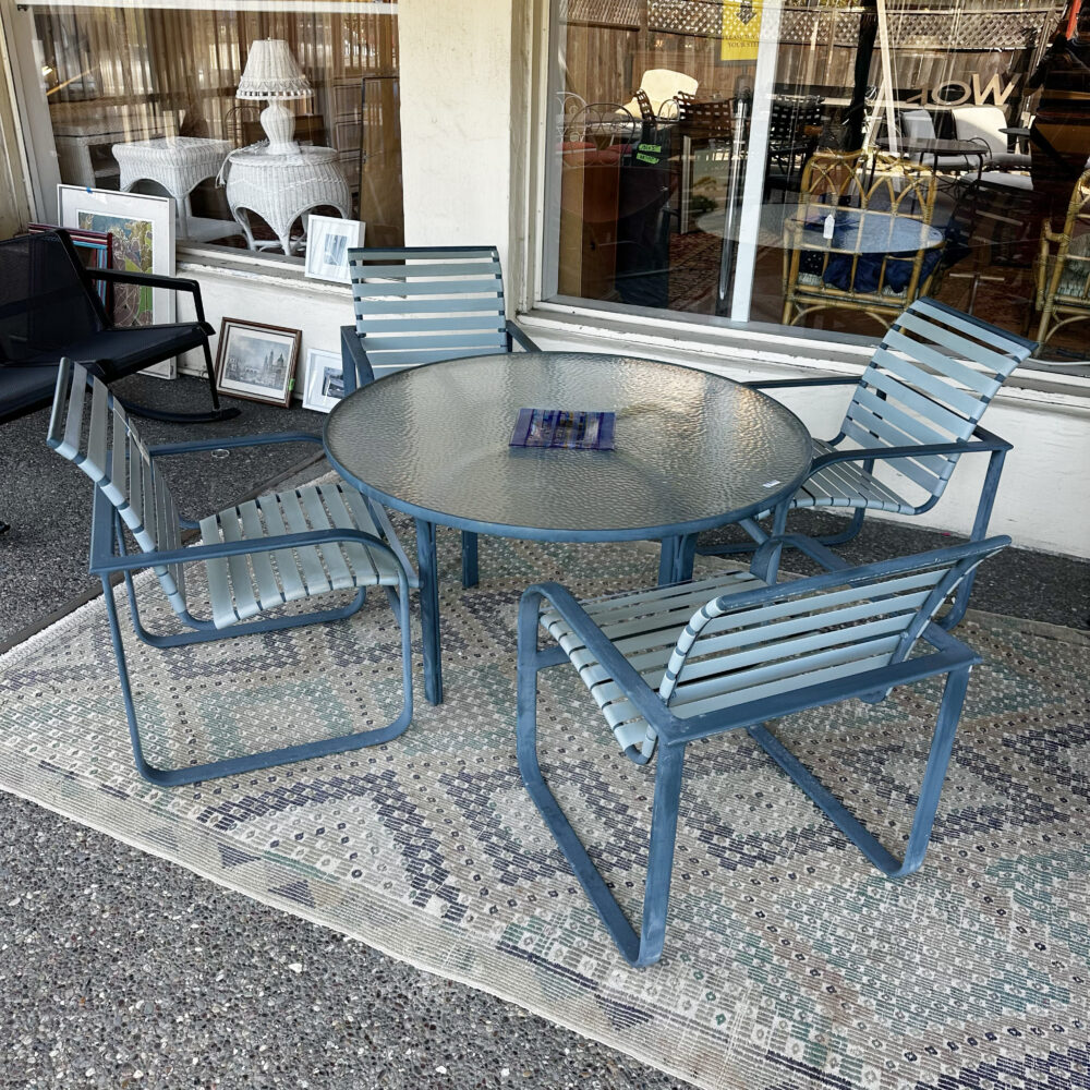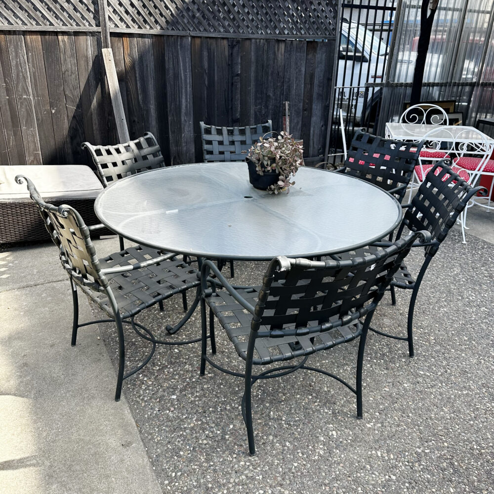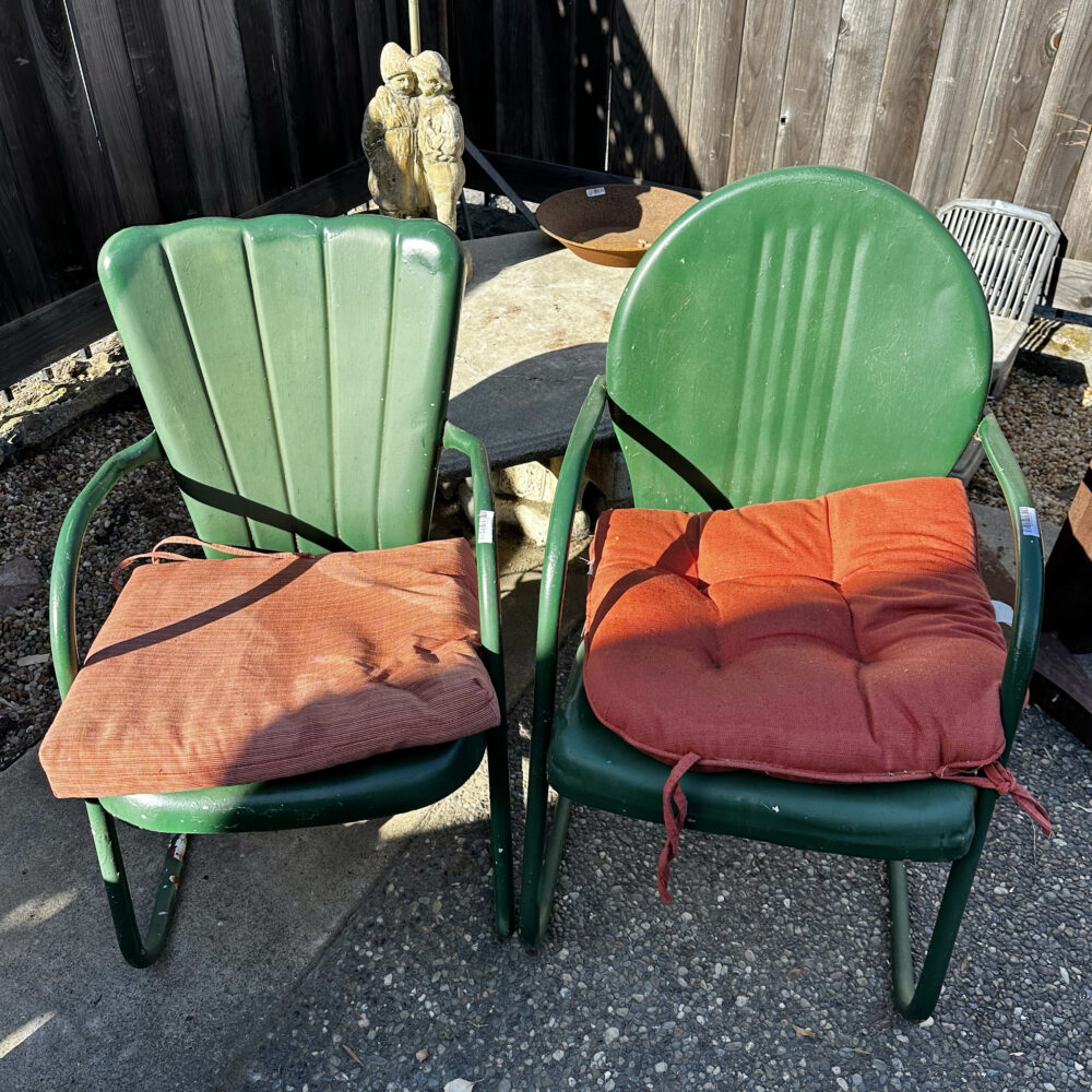 - Seating & dining: Redwood chairs with ottomans, Tropitone sling dining set, patio loveseat.