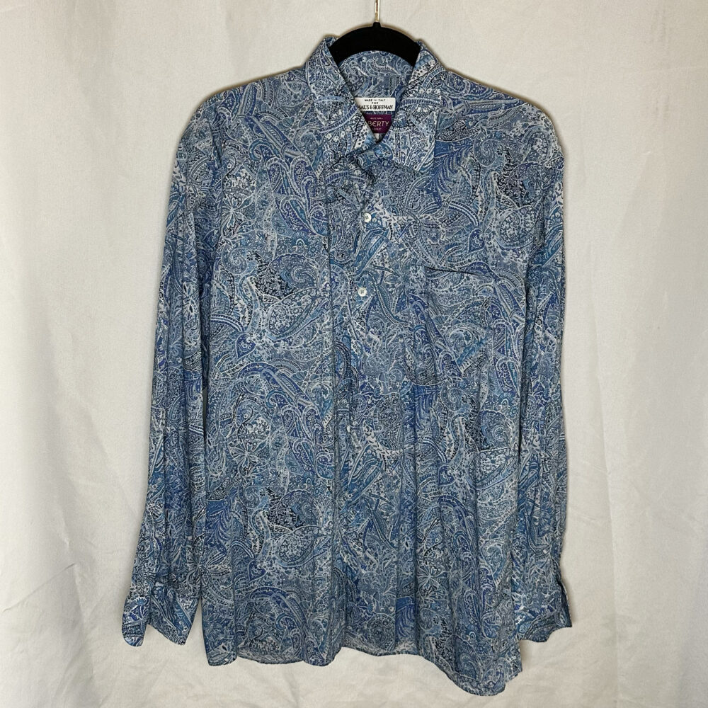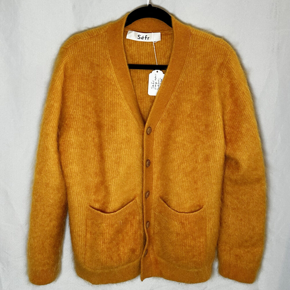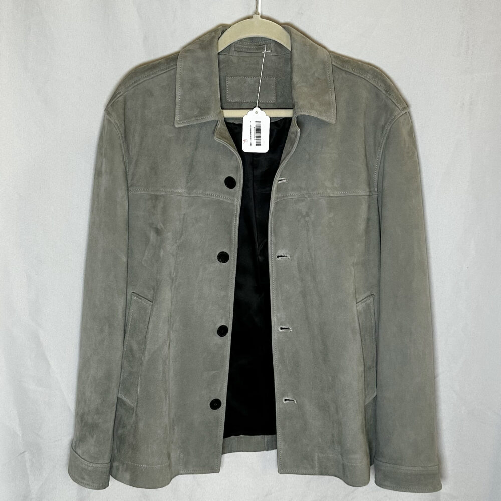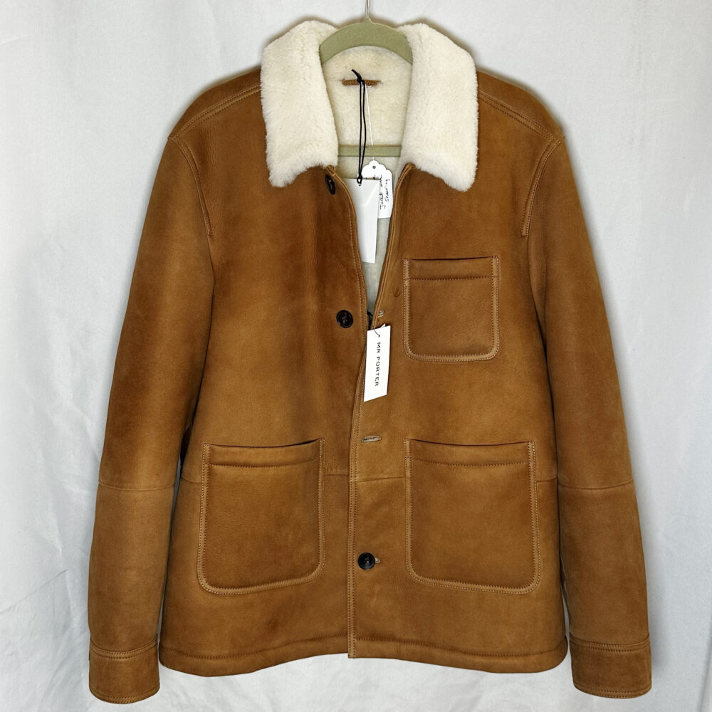 - Men’s luxury pieces: Mr. Porter suede & shearling jacket (new with tags), Officine Générale green suede jacket, Mr P. gray suede jacket, Sefr mohair orange sweater, shirts by Ralph Lauren, Polo, Liberty, Moss & Hoffman, Etro, and Gitman Brothers.
