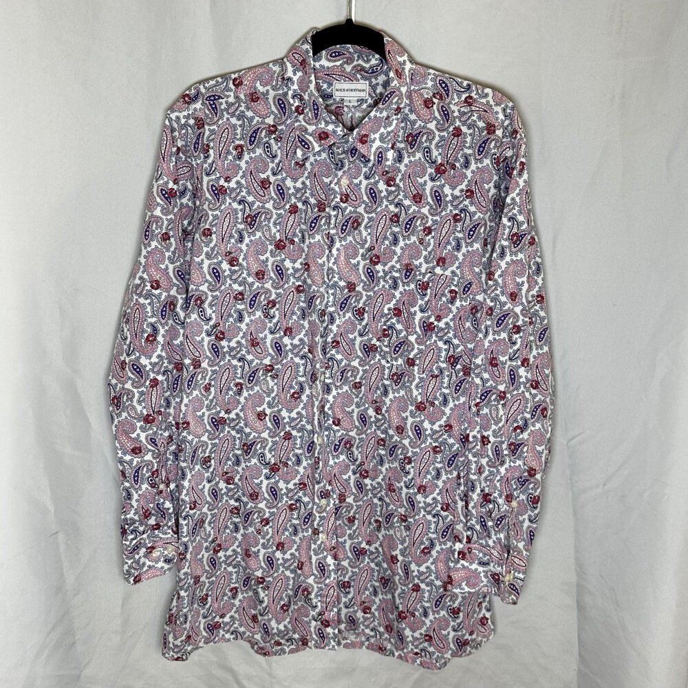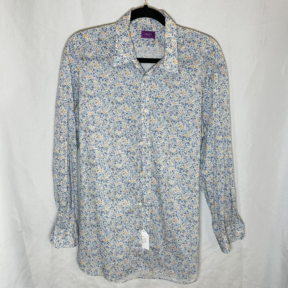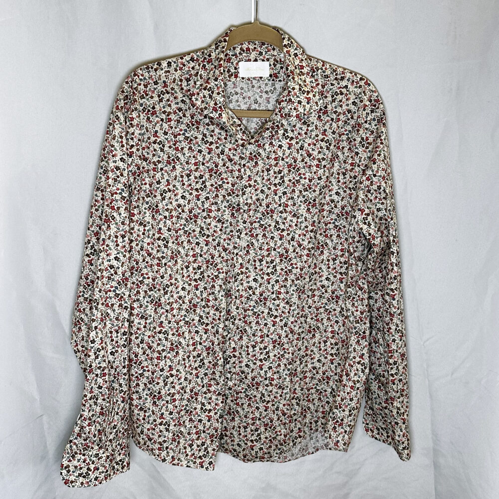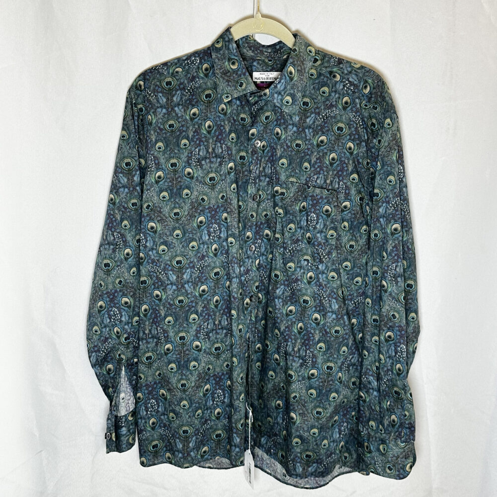 - Men’s luxury pieces: Mr. Porter suede & shearling jacket (new with tags), Officine Générale green suede jacket, Mr P. gray suede jacket, Sefr mohair orange sweater, shirts by Ralph Lauren, Polo, Liberty, Moss & Hoffman, Etro, and Gitman Brothers.
