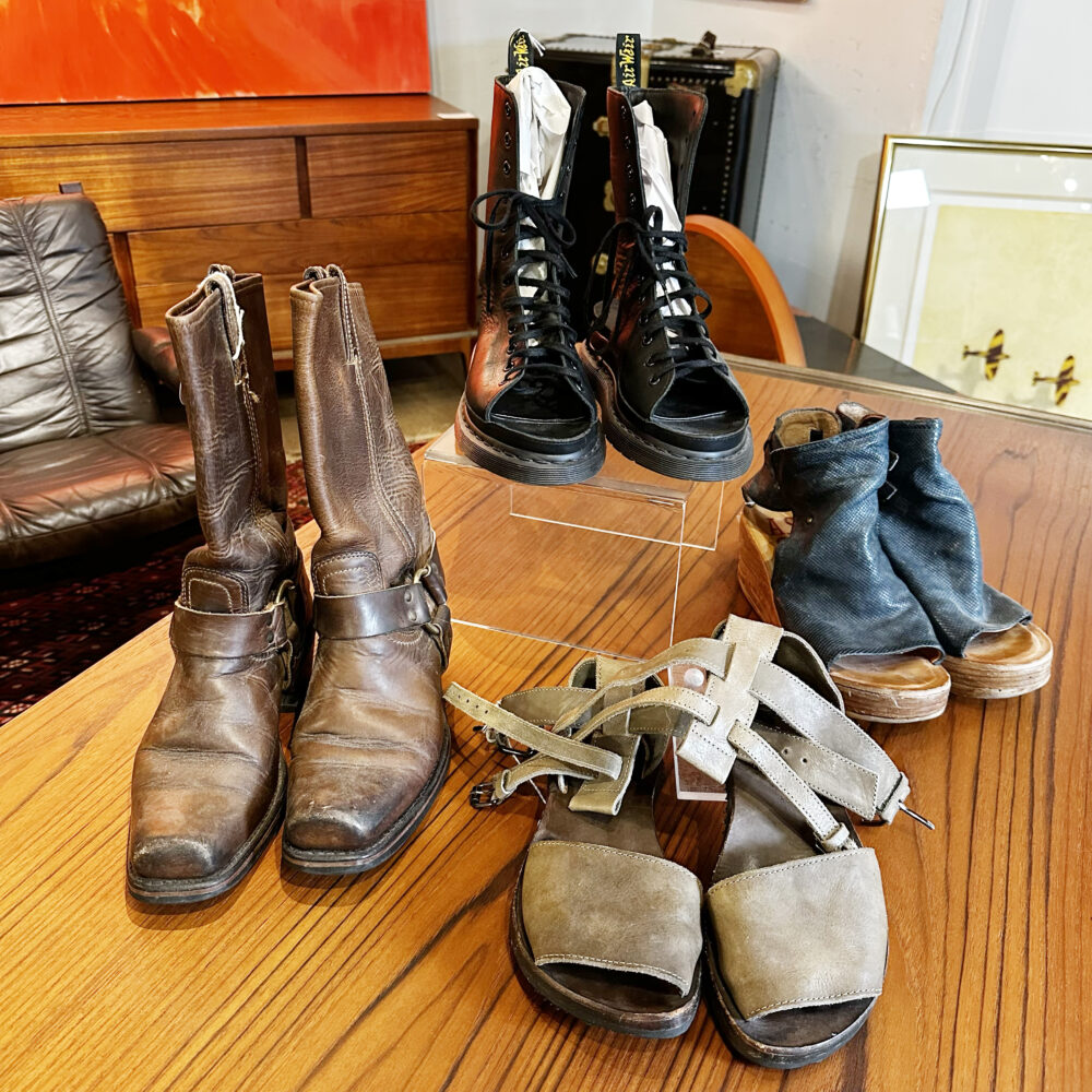 - Shoes & accessories: Dr. Martens, Frye, AS 98, and a new-in-box hat by Biltmore.