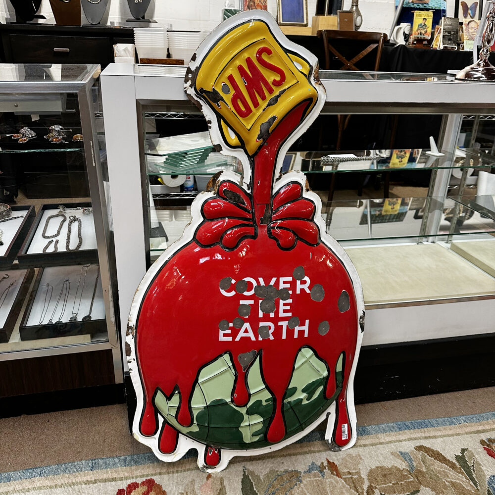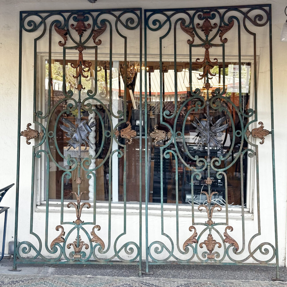 - League of its own: Enameled Sherwin Williams paint sign and a pair of colossal iron gates.