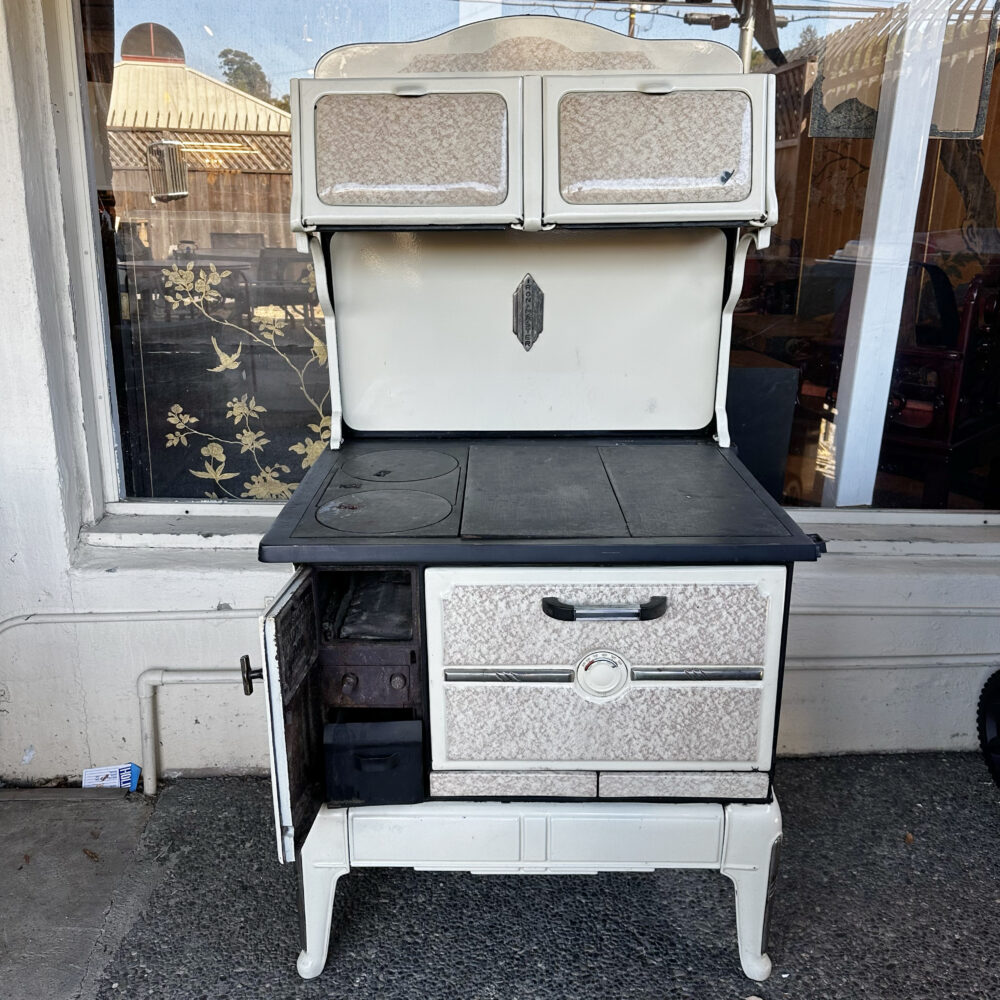 - Vintage accents: 1920s physician sign, 1930s Kandahar skis, 1960s woven fish trap basket, an antique flour bin table and an antique iron master stove.