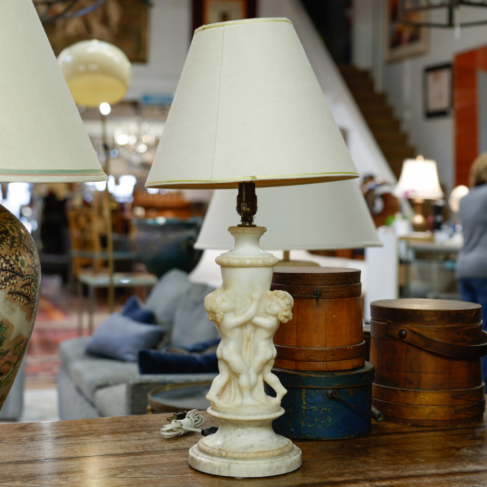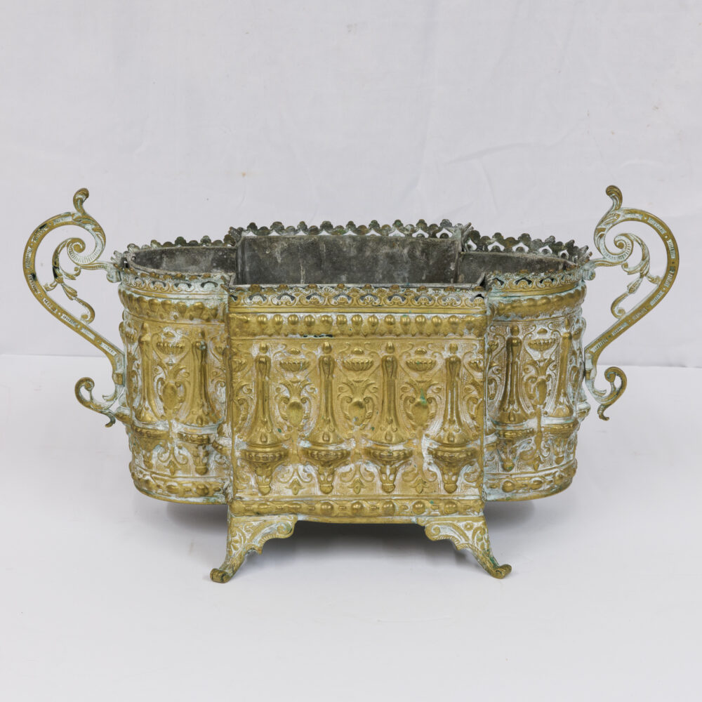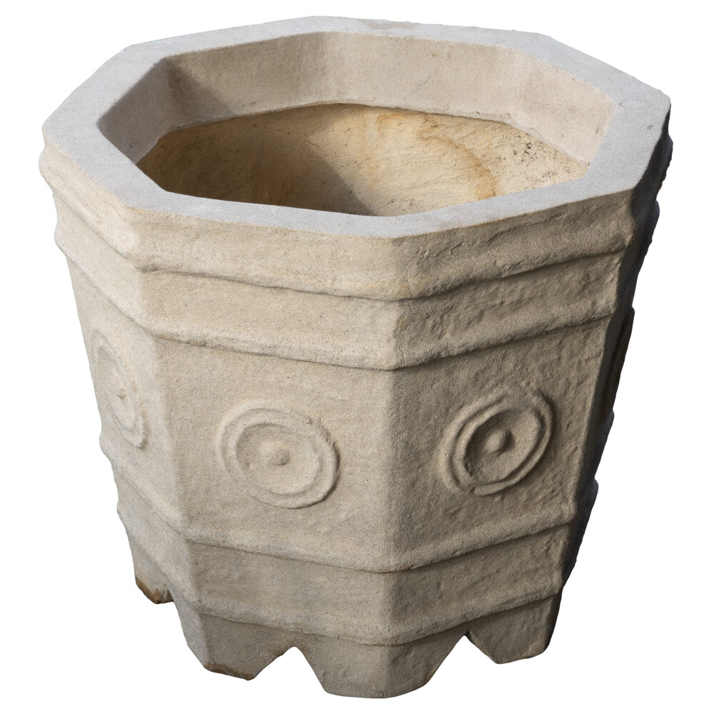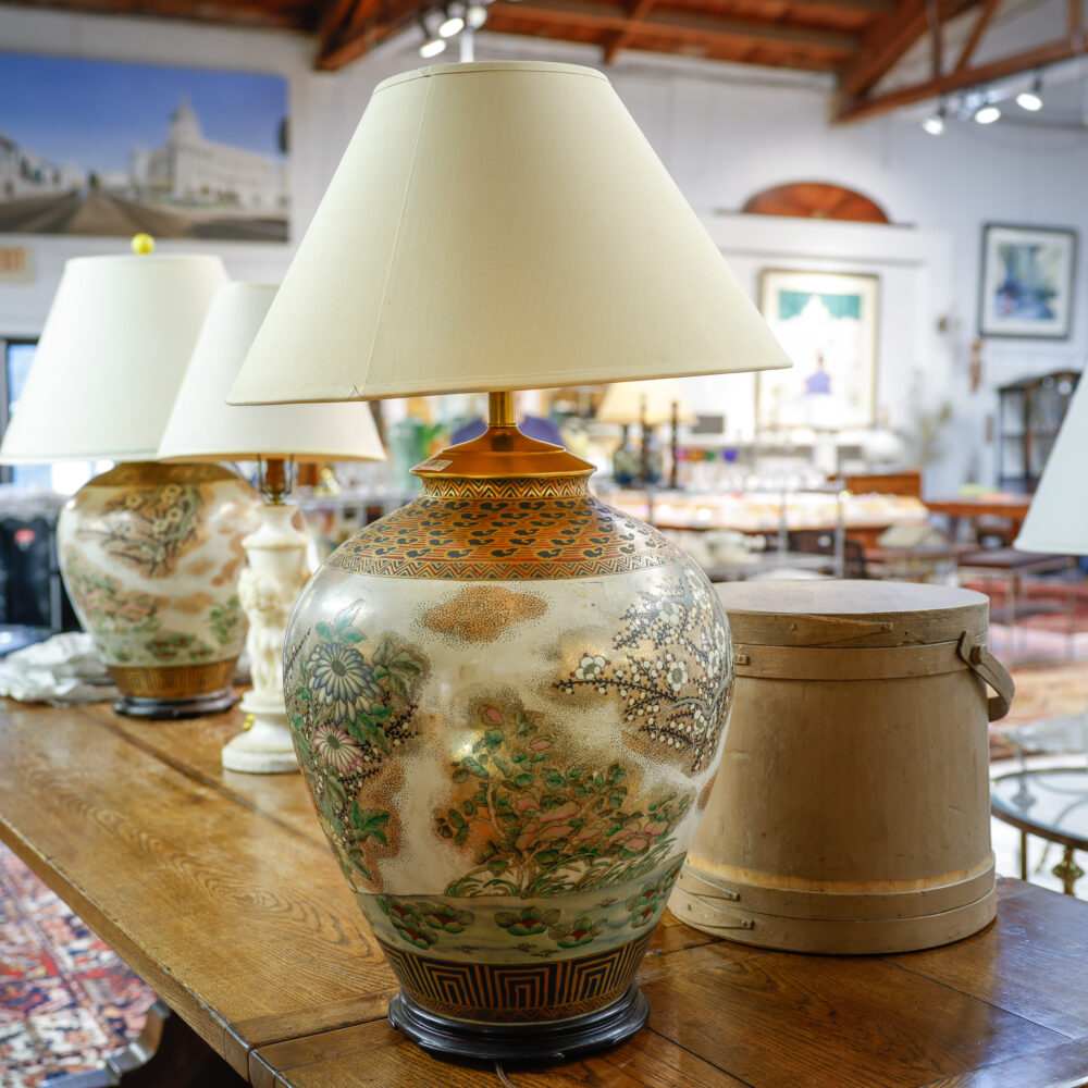 Create an inspired outdoor oasis with an adorable garden hippopotamus, a five-piece vibrantly colored bistro seating arrangement, a fiberglass scroll-legged console table, a large planter by Michael Taylor Designs, an antique wrought iron multi-tiered plant stand, 1920s wicker shades, decorative urns and pots, new outdoor seating collections, an antique autoclave, and a magnificent Thai Rattanakosin garden doors jardiniere on pedestal.