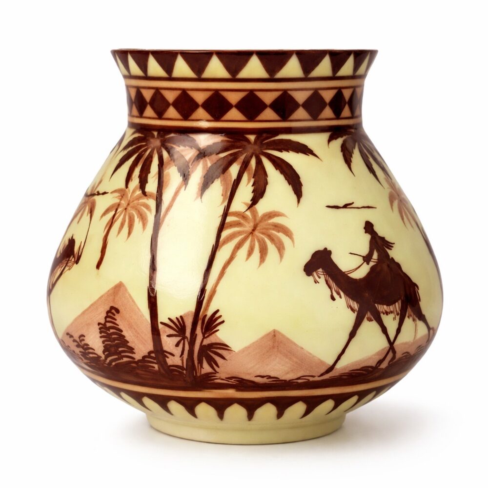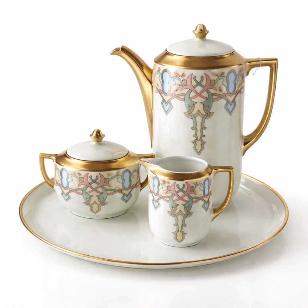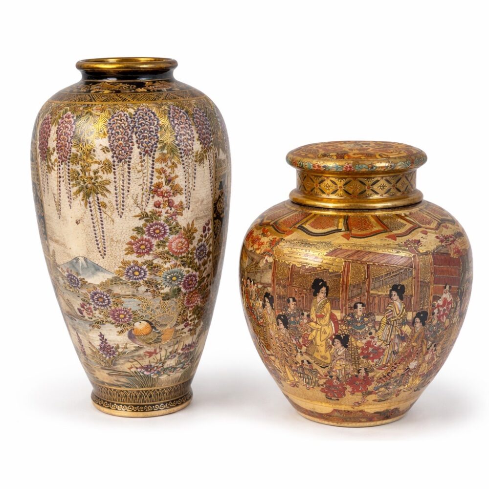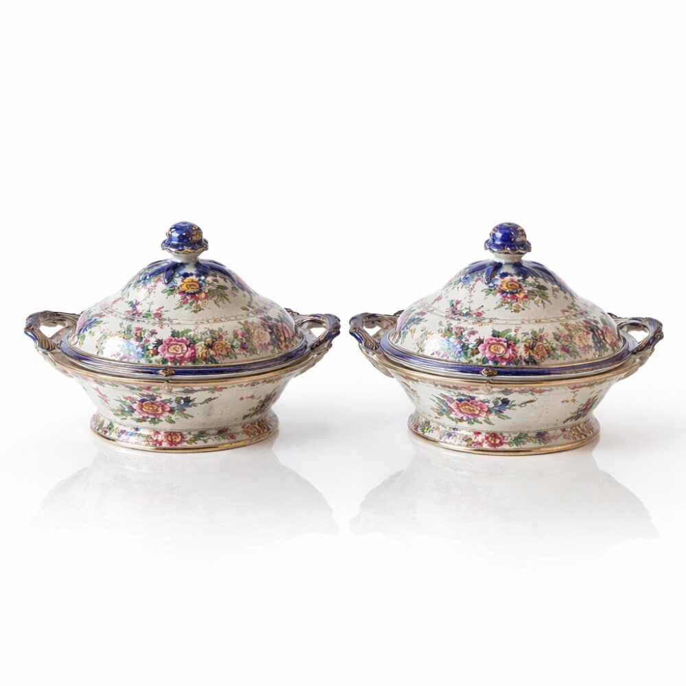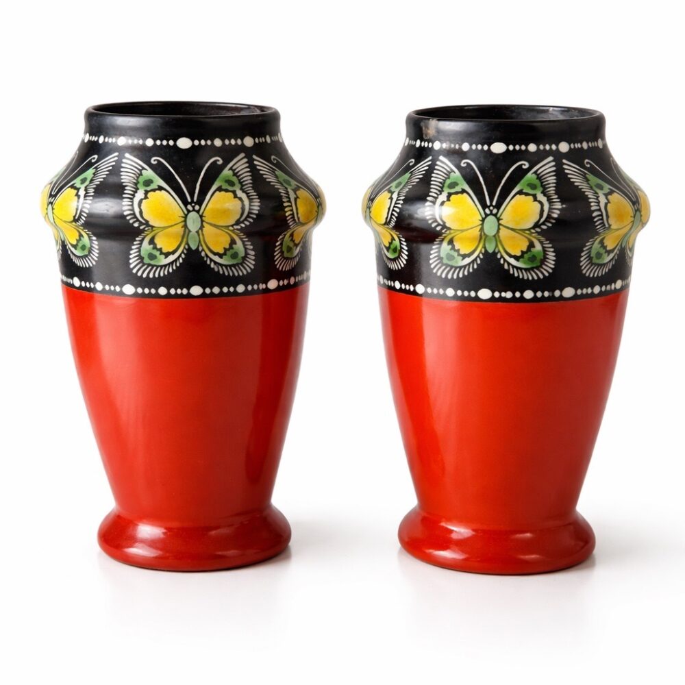 This sale features richly layered household offerings including two large collections of fiesta ware, a chaffing dish design for Chase by Lurelle Guild, a pair of Chinese flora tureens by Zachariah Boyle and Son, dishware by Juliska, a selection of decanters, a Leune Art Deco vase, Spode serving ware in “Stafford flowers”, Heath dinnerware, vintage Homer Laughlin fiesta drinking glasses, a set of Minton porcelain plates for Tiffany, a five piece painted porcelain coffee set by the Thomas China company, a pair of Shelley vases, a Rockwood pinecone vase, an art deco double faced mask by Rudolph Podany for Keramos, an Abercrombie and Fitch desk clock, a Sergio Bustamante papier-mâché parrot, a Burmese carved gilt wood nat spirit sculpture, a Mandalay style standing Buddha statue, a vintage Hamilton Beach juicer, a Meiji earthenware pot, a wicker trunk by M. Wurzi and Sohne, a limited edition signed Paule acrylic amber frog figure, a pair of aluminum art deco Kensington Marlborough vases, Andres de Morgades wastebaskets, and a Gordon Chandler metal kimono.