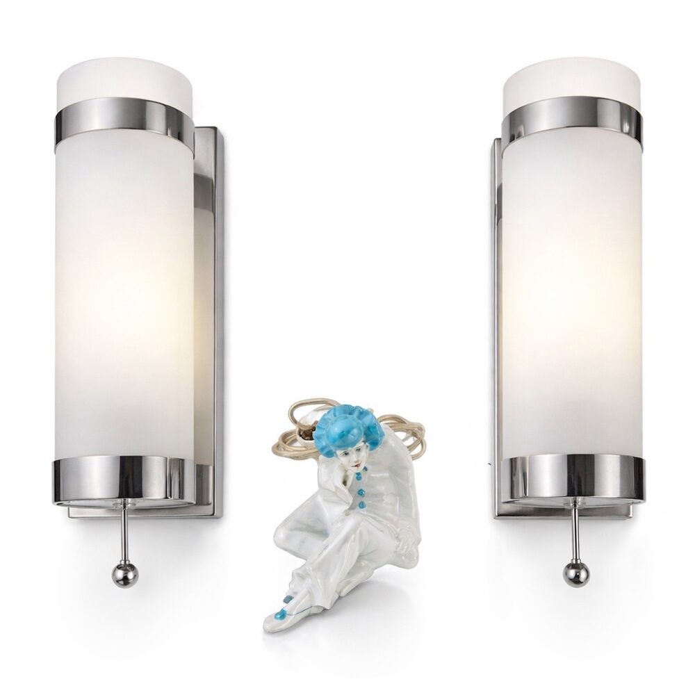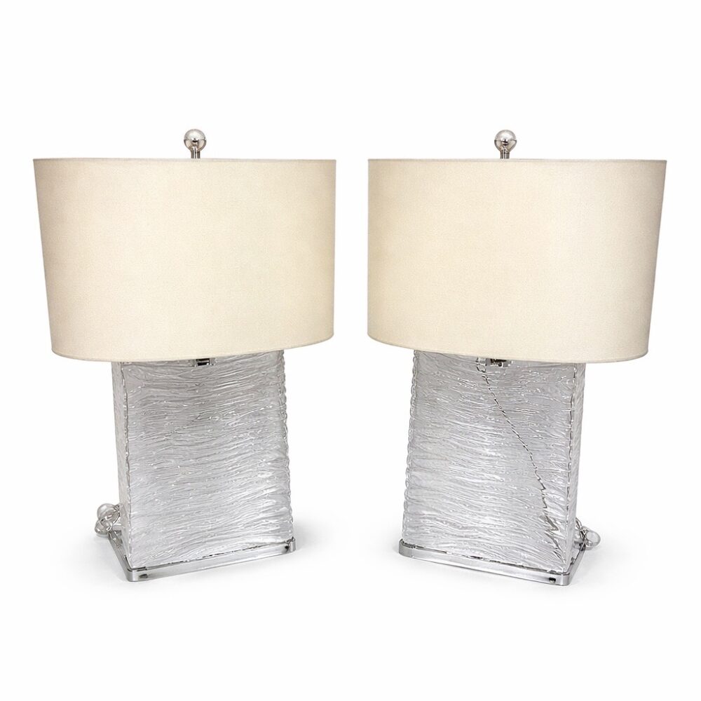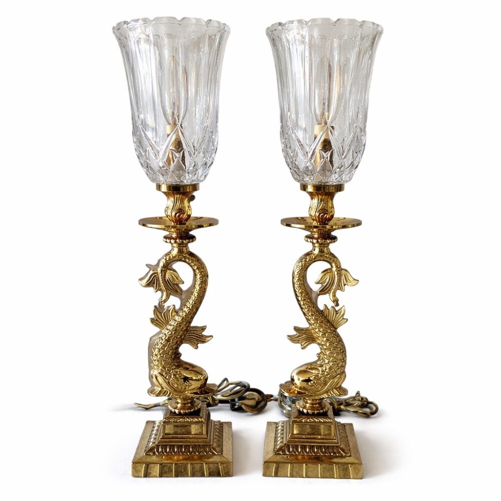 Illuminate your space with standout lighting, including vintage 1980 John Hutton for Donghia Murano glass lamps in clear glass and brass, a dramatic arc lamp with marble base, a highly collectible Dazor saucer desk lamp circa 1950s, art deco wall sconces, an art deco chrome table lamp, a French art deco Pierrot porcelain lamp, a wrought iron transition table lamp, a tea tin table lamp, a Pottery Barn faux antler chandelier, and other new additions to our chandelier collection—be sure to look up.